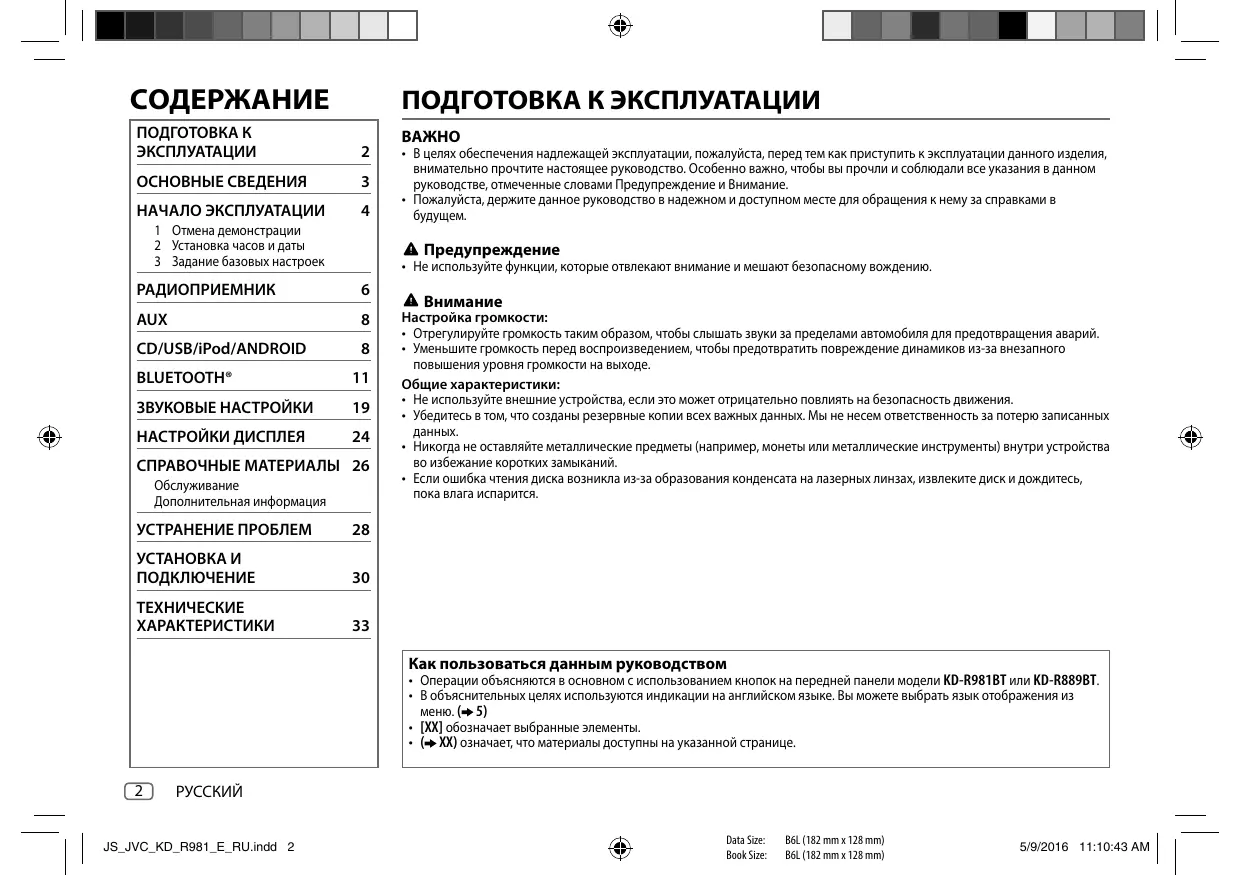 РУКОВОДСТВО ПОЛЬЗОВАТЕЛЯ KD-R981 BT JVC