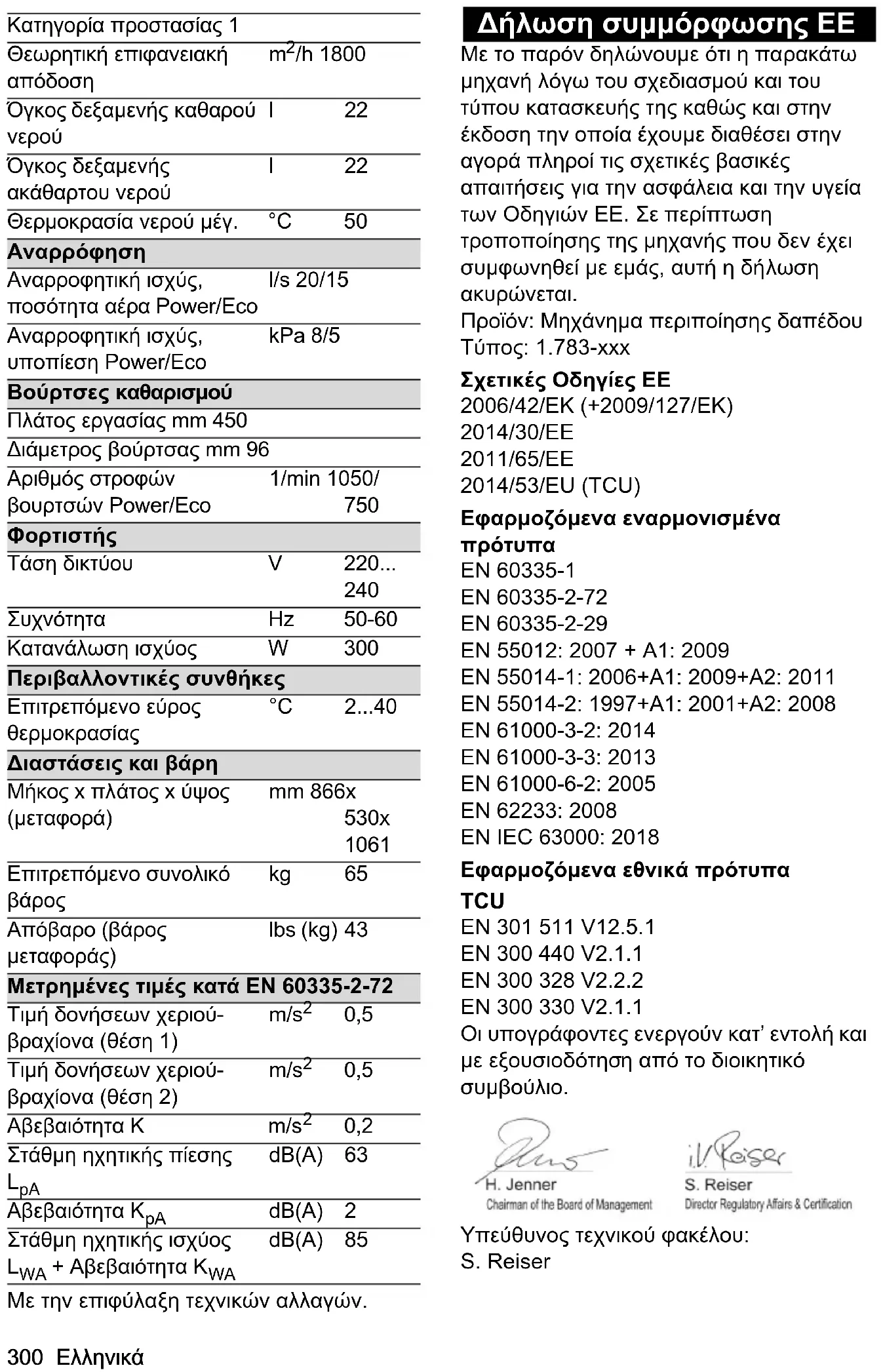TCU EN 301 511 V12.5.1 EN 300 440 V2.1.1 EN 300 328 V2.2.2 EN 300 330 V2.1.1 Нижеподписавшиеся лица действуют от имени и по доверенности Правления. Лицо, ответственное за ведение документации: Ш. Райзер (S. Reiser) Alfred Kärcher SE & Co. KG Alfred-Kärcher-Str. 28–40 71364 Winnenden (Germany) Тел.: +49 7195 14-0 Факс: +49 7195 14-2212 г. Винненден, 01.02.2021