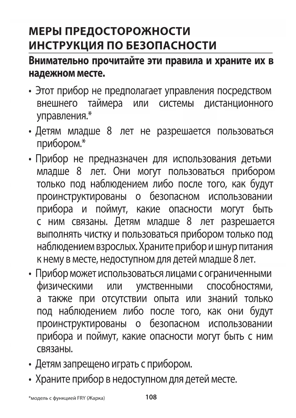 - Храните прибор в недоступном для детей месте. *модель с функцией FRY (Жарка)109