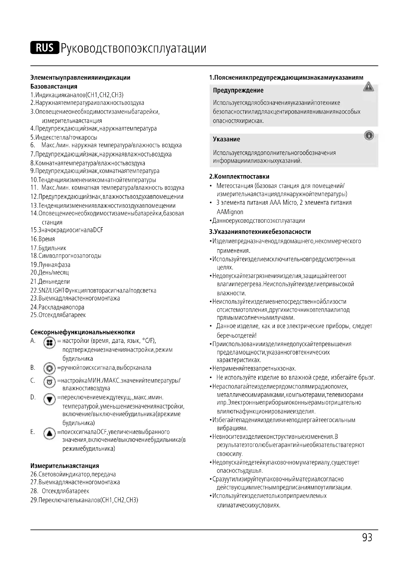 - Метеостанция (базовая станция для помещений/ измерительная станция для наружной температуры)