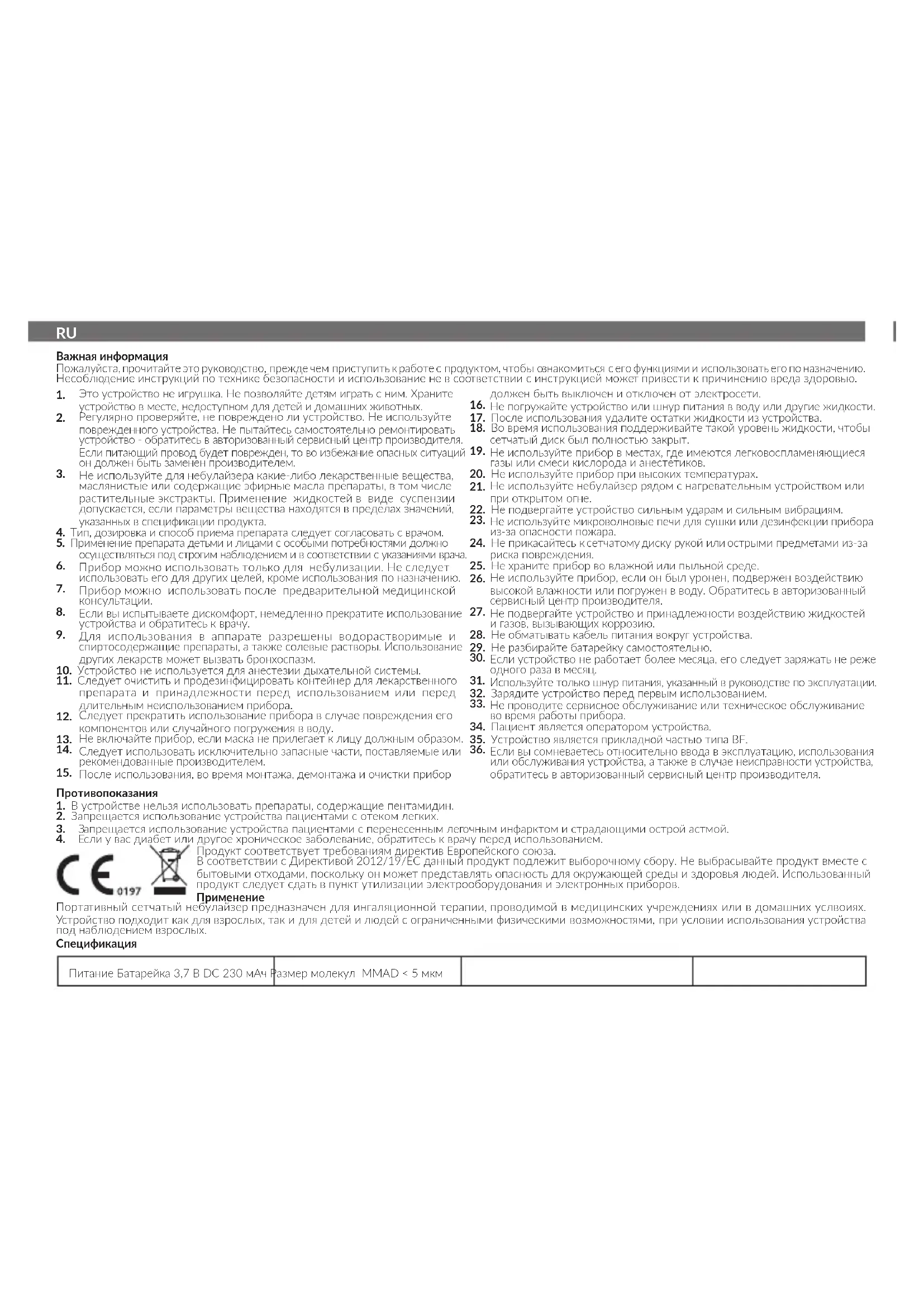 Проверьте, достаточное ли количество лекарства. Убедитесь, что сетчатый диск не заблокирован. Устройство выключается или издает необычный звук. Проверьте, достаточное ли количество лекарства. Особые показания, касающиеся детей