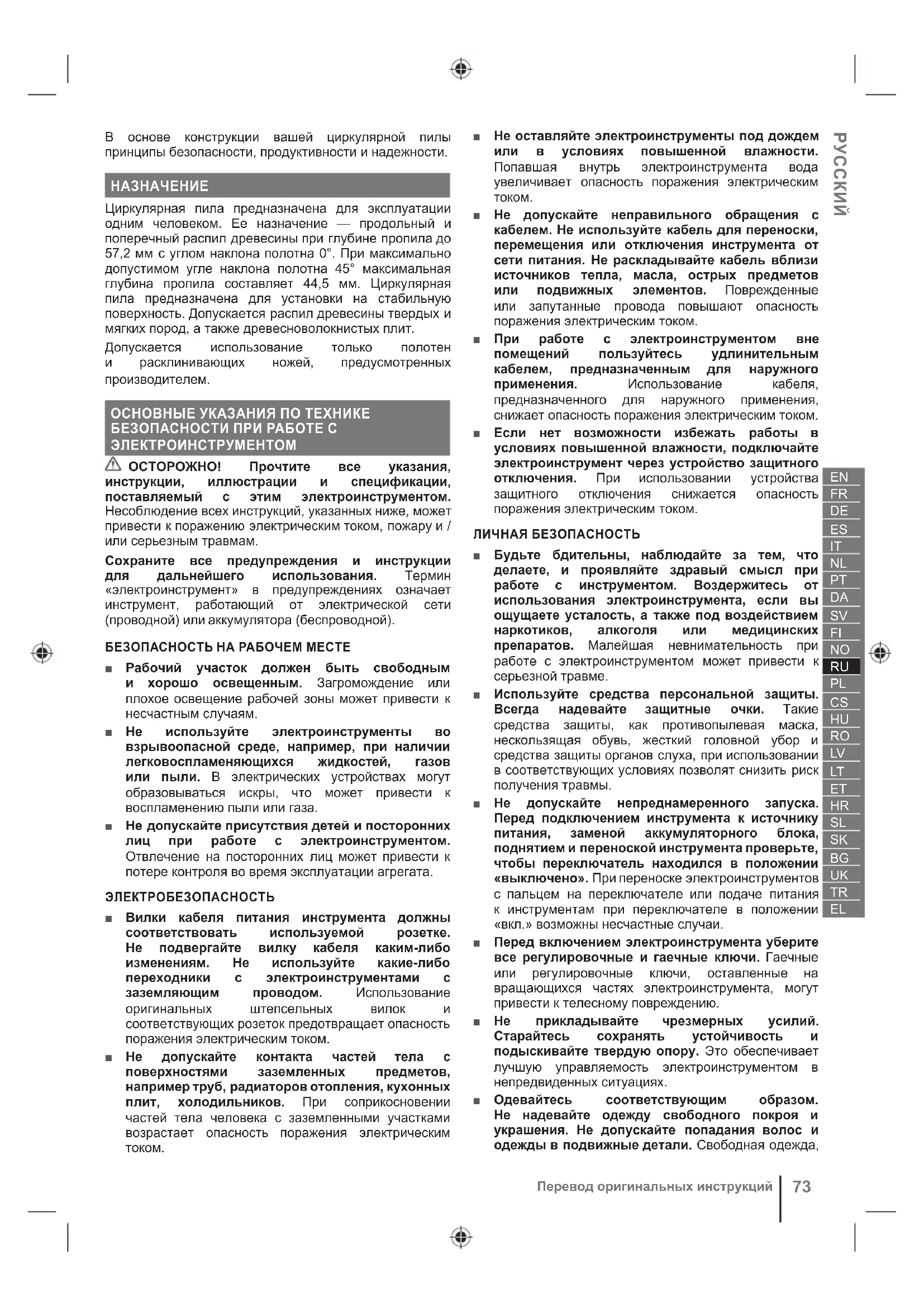 Перевод оригинальных инструкцийПРАВИЛА ТЕХНИКИ БЕЗОПАСНОСТИ ПРИ ИСПОЛЬЗОВАНИИ ЦИРКУЛЯРНЫХ ПИЛ ПРЕДОСТЕРЕЖЕНИЯ ОТНОСИТЕЛЬНО ЗАЩИТНЫХ