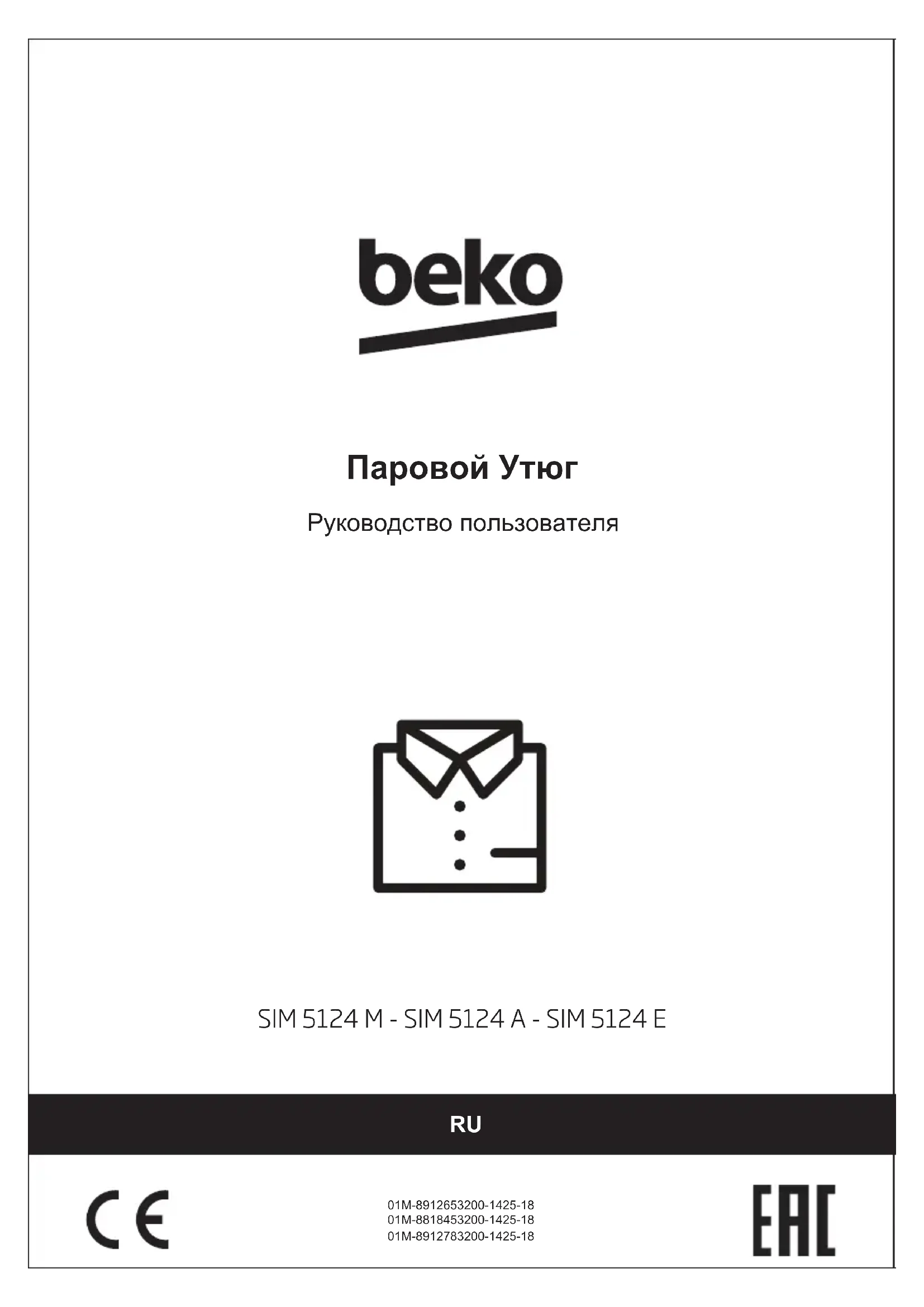 Руководство пользователя Паровой Утюг 01M-8912653200-1425-18 01M-8818453200-1425-18 01M-8912783200-1425-18Пожалуйста, сначала внимательно прочитайте дан- ное руководство! Уважаемый покупатель! Благодарим Вас за приобретение оборудования Beko. Мы надеемся, что вы получите наилучшие результаты от его использования: прибор был изготовлен с обеспечением высокого качества на базе новейших технологий. Поэтому внимательно прочитайте данное руководство пользователя и все другие сопроводительные документы перед использованием устройства. Рекомендуется сохранить данный документ в качестве справочного пособия для дальнейшего использования. При передаче устройства какому-либо другому лицу приложите к нему руководство пользователя. Соблюдайте все предупреждения и информацию в руководстве пользователя. Значения Символов В различных разделах данного руководства пользователя используются следующие обозначения: