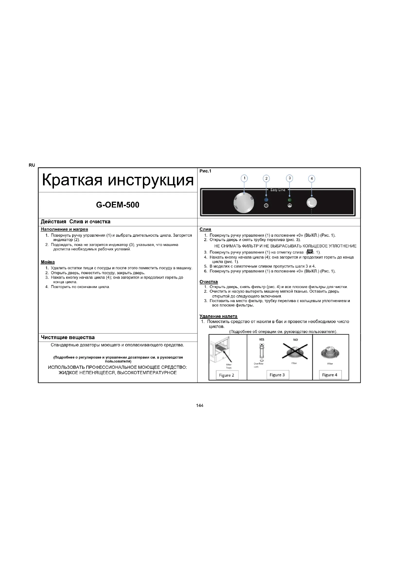 G-OEM-500 Действия Слив и очистка Наполнение и нагрев