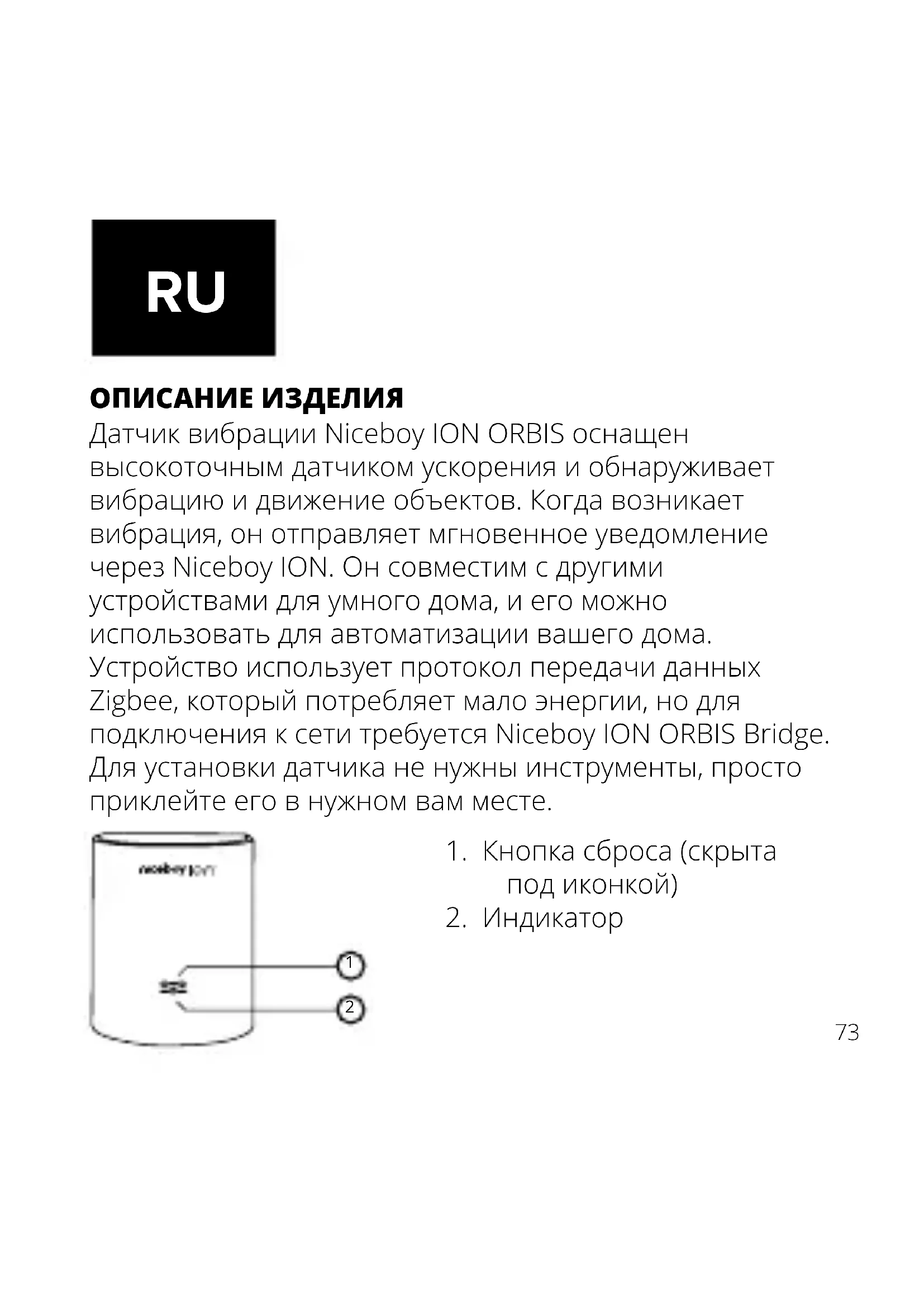 РУКОВОДСТВО ПОЛЬЗОВАТЕЛЯ ION ORBIS Vibration Sensor Niceboy
