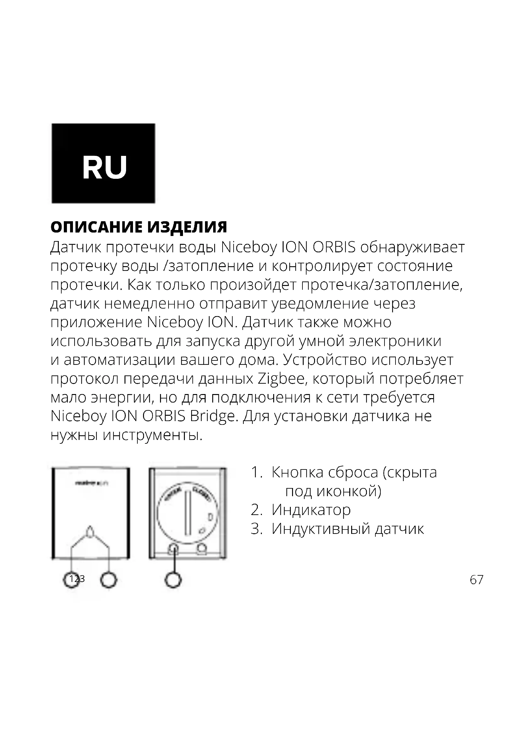 РУКОВОДСТВО ПОЛЬЗОВАТЕЛЯ ION ORBIS Water Sensor Niceboy