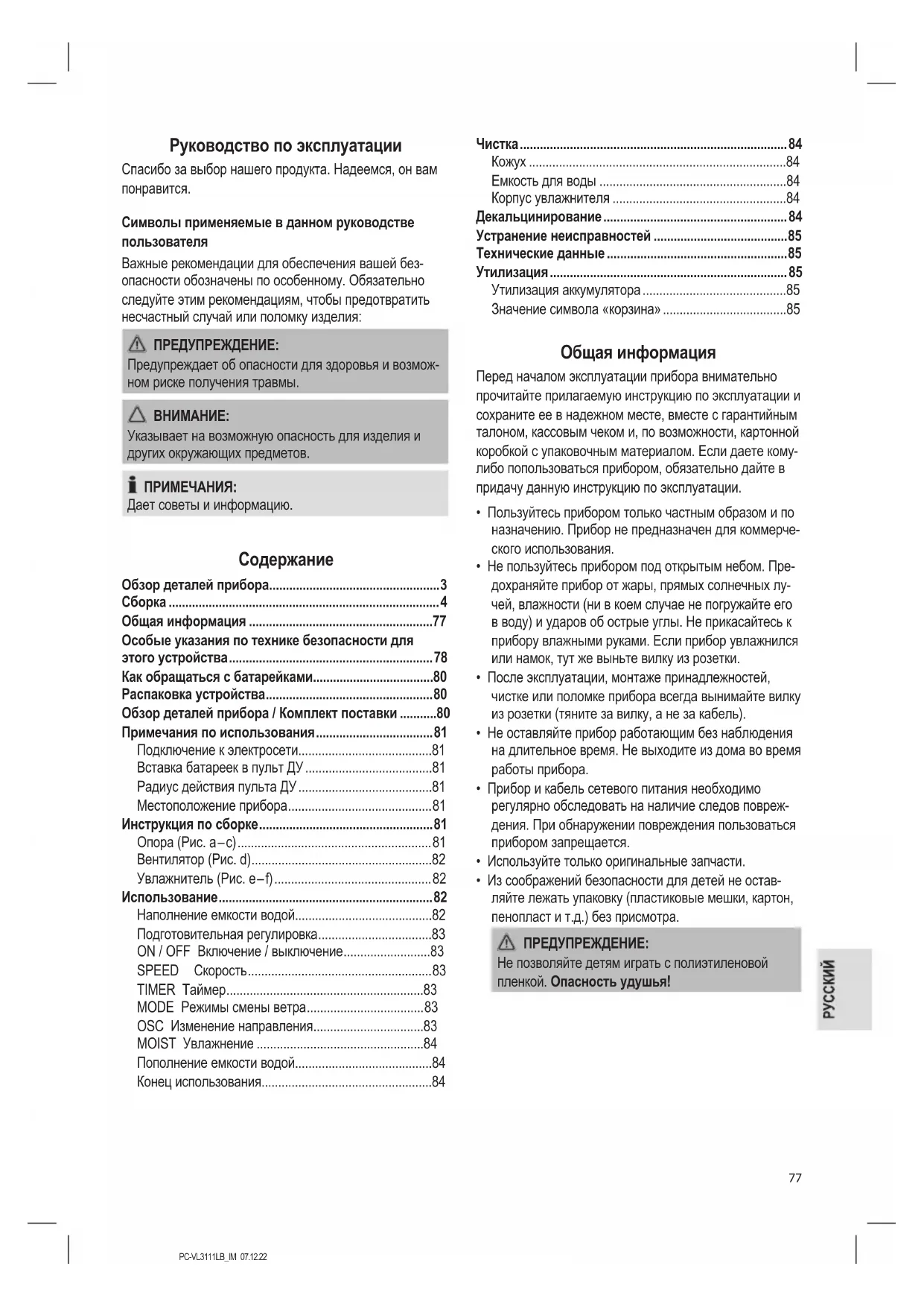 - Данное изделие может использоваться детьми не младше 8 лет и лицами с ограниченными физическими, сенсорными и умственными способностями, а также лицами без соответ- ствующего опыта и знаний, если за ними ведется контрольPC-VL3111LB_IM 07.12.22