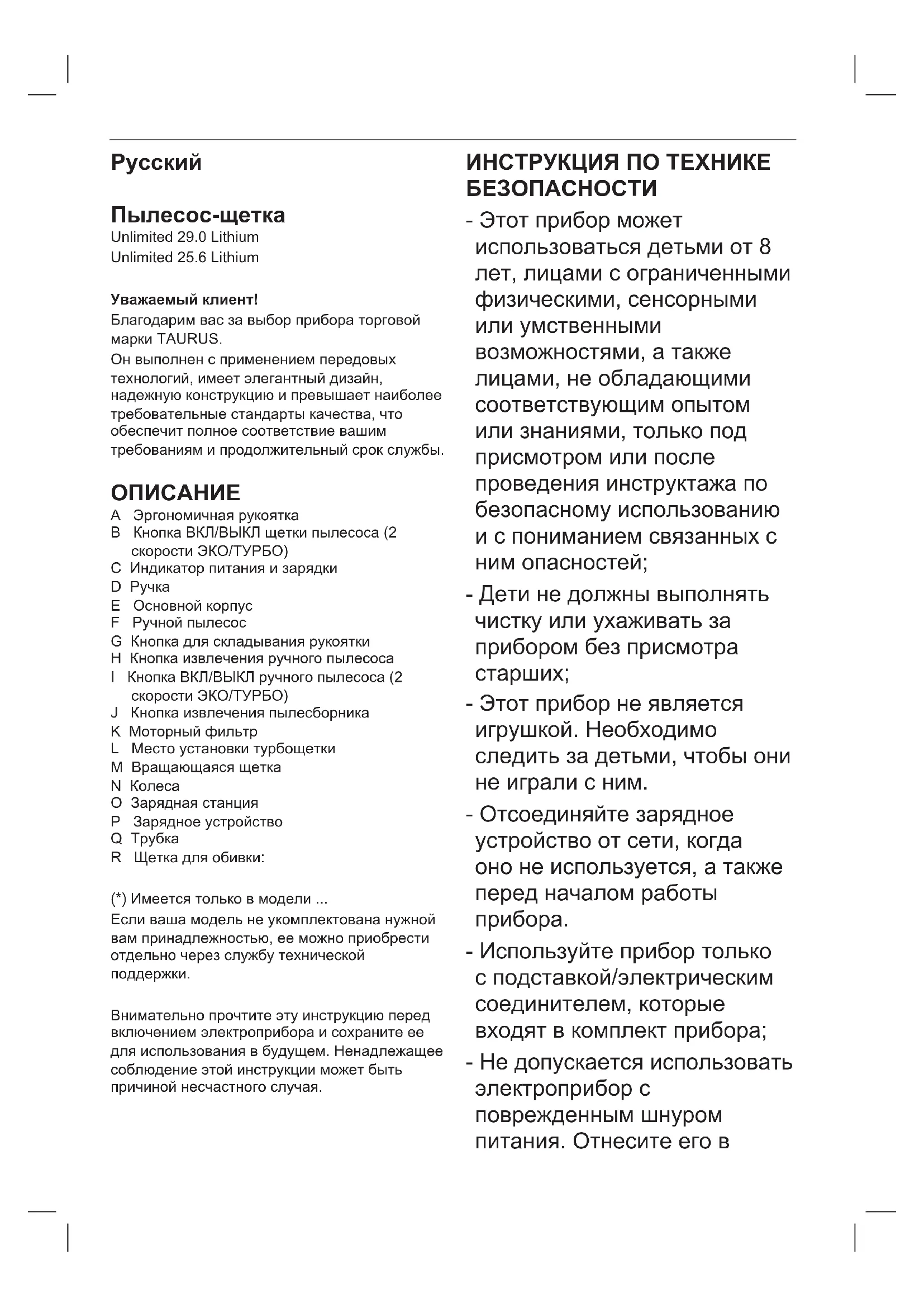 РУКОВОДСТВО ПОЛЬЗОВАТЕЛЯ Unlimited 25.6 Lithium TAURUS