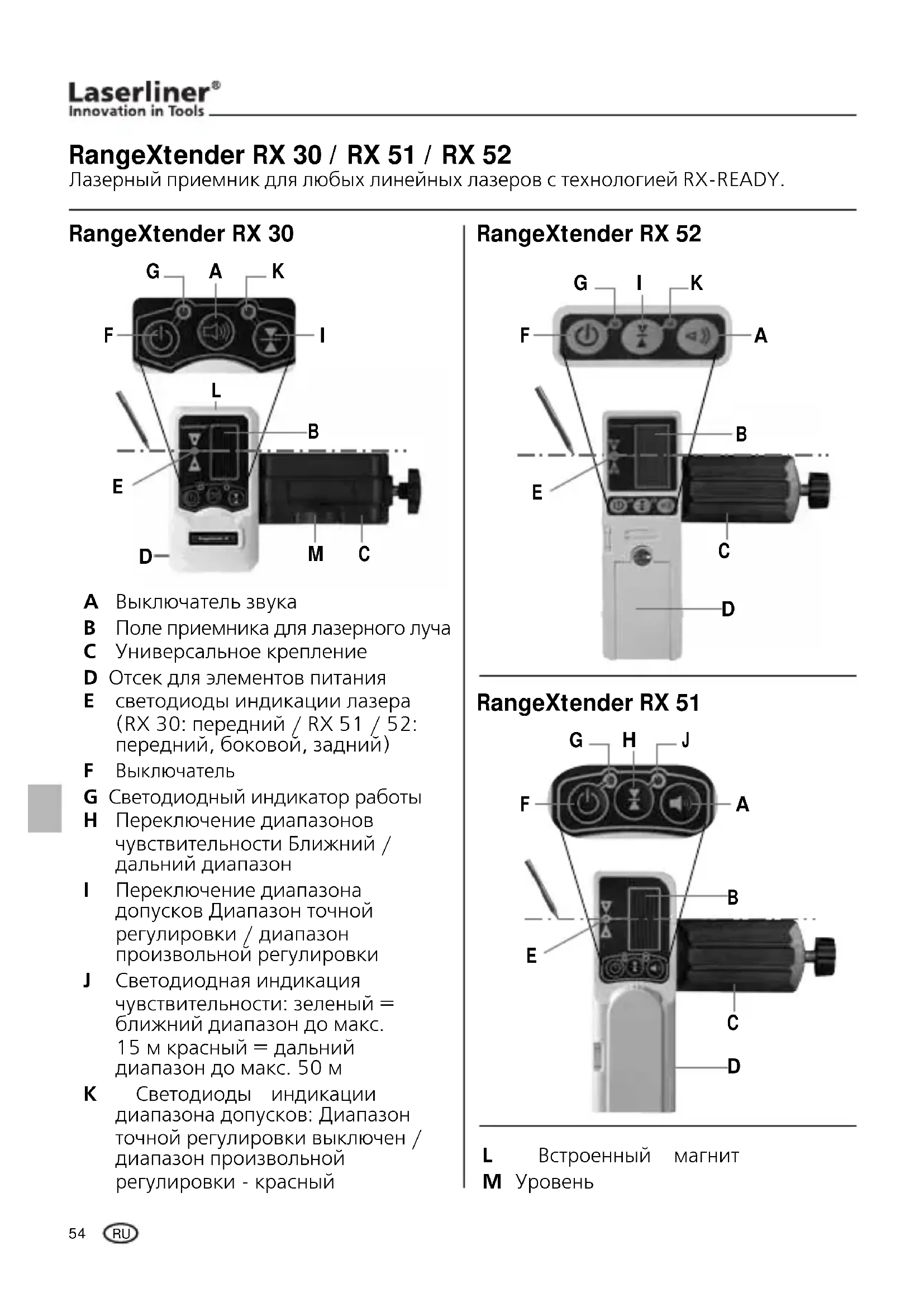 RangeXtender RX 30 / RX 51 / RX 52 Лазерный приемник для любых линейных лазеров с технологией RX-READY.