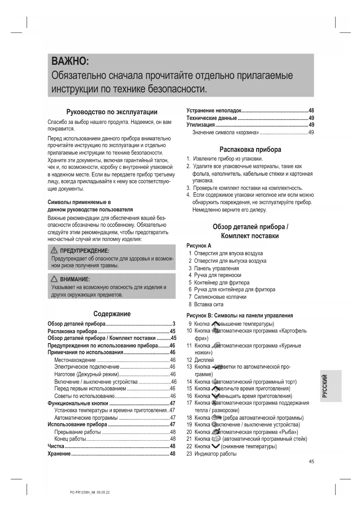 - Обзор деталей прибора / Комплект поставки p. 45
