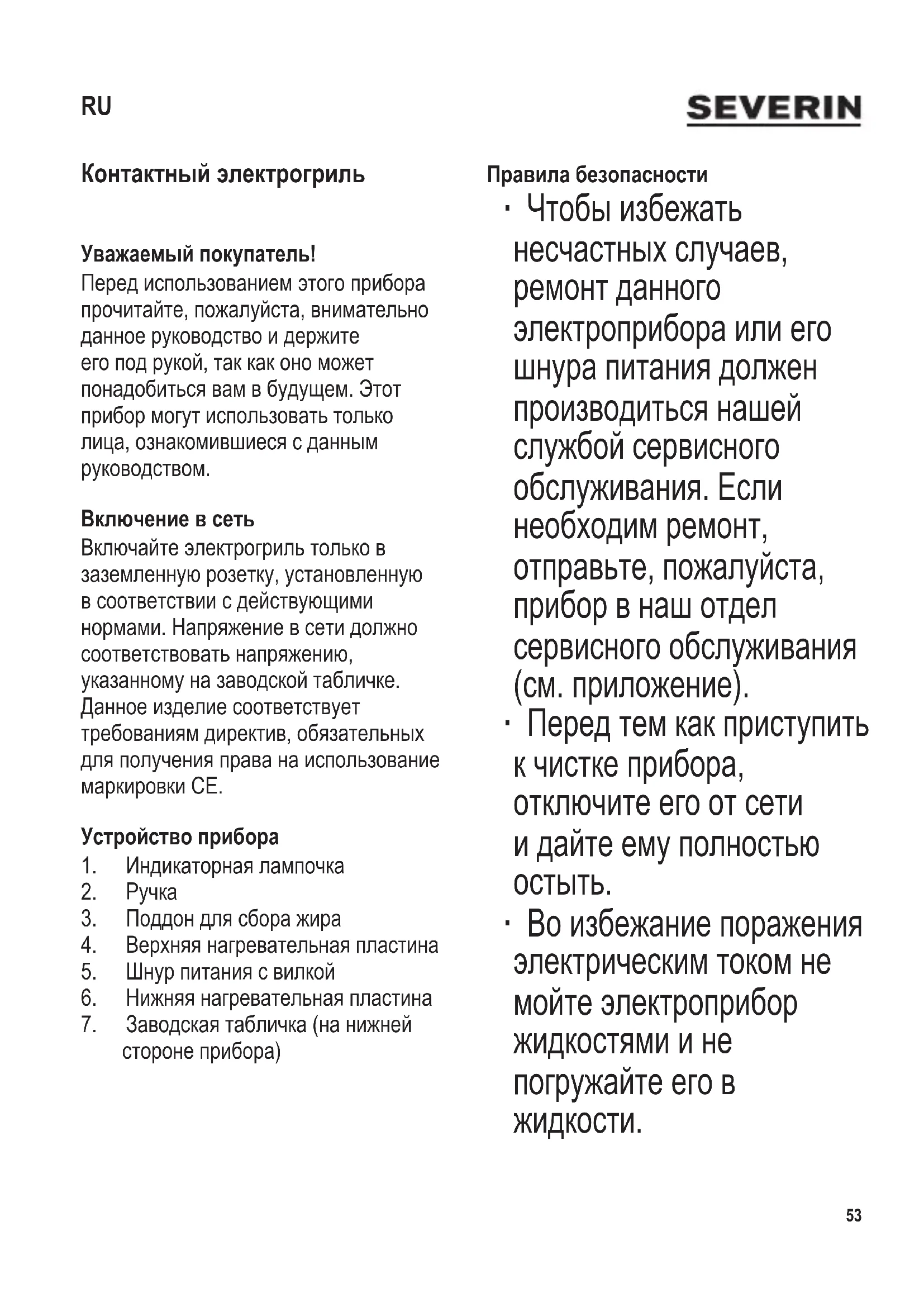 РУКОВОДСТВО ПОЛЬЗОВАТЕЛЯ RG 2394 SEVERIN