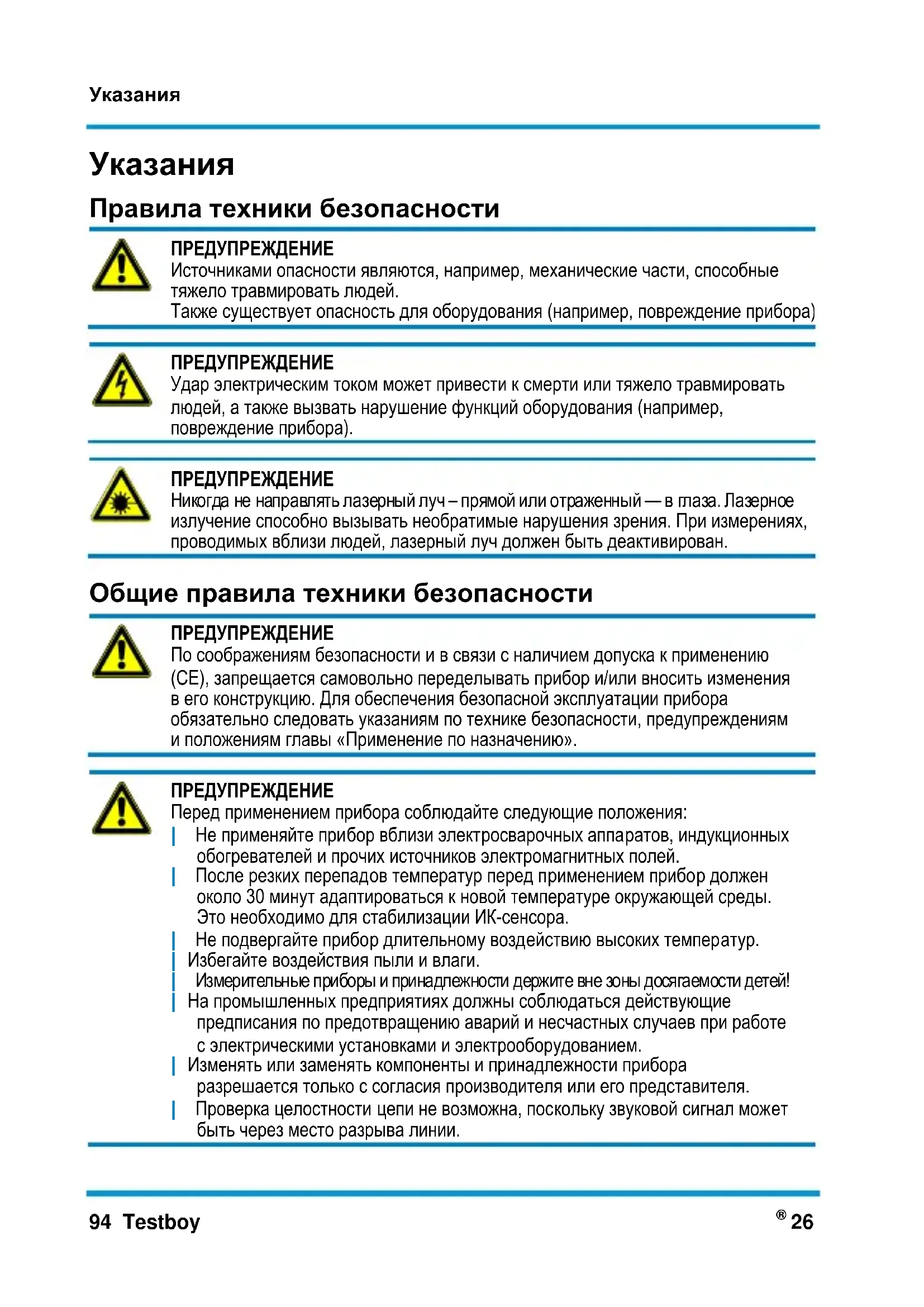 Инструкция по эксплуатации 94Hinweise Testboy