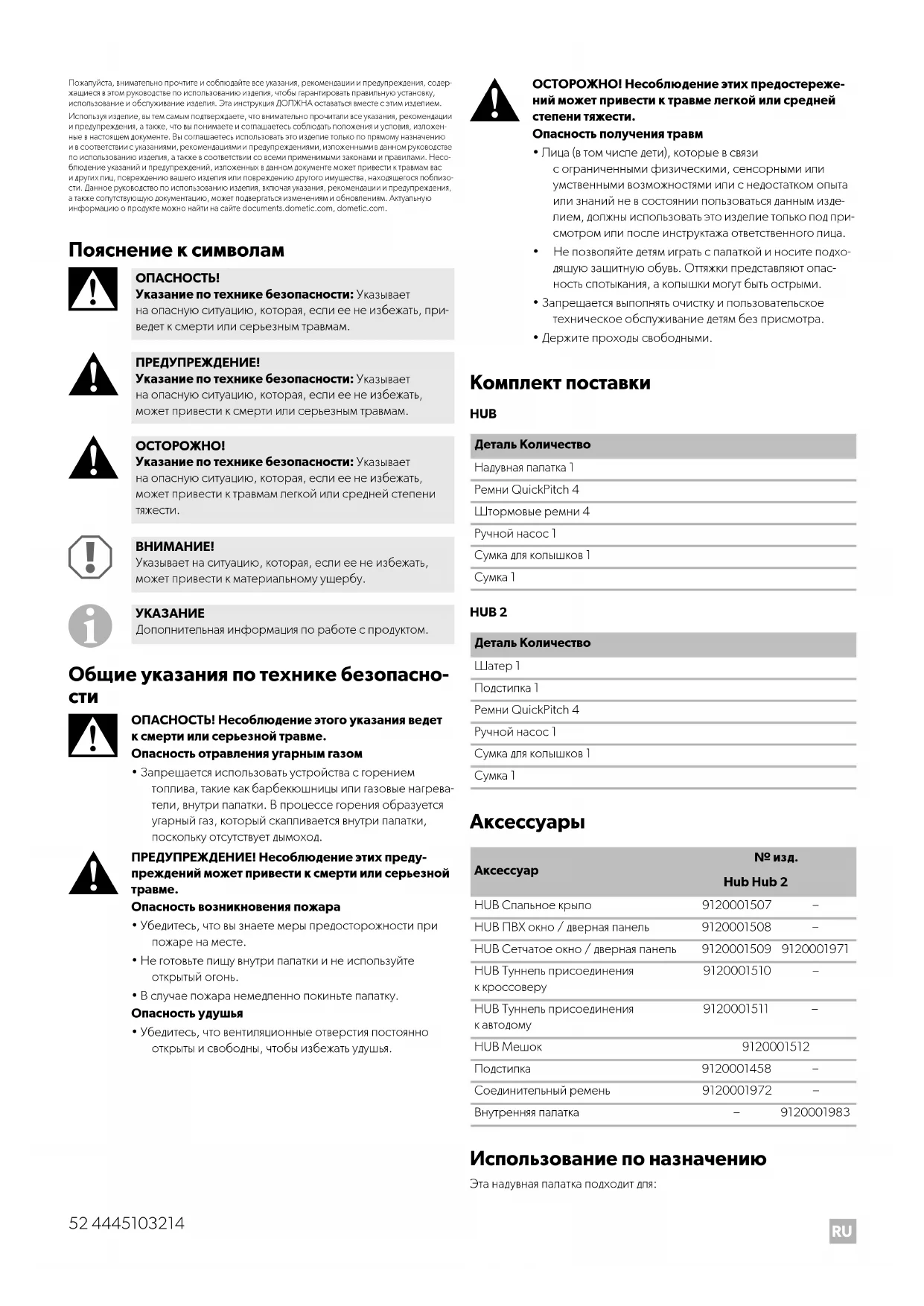 9120001511 – HUB Мешок 9120001512 Подстилка 9120001458 – Соединительный ремень 9120001972 – Внутренняя палатка – 9120001983RU