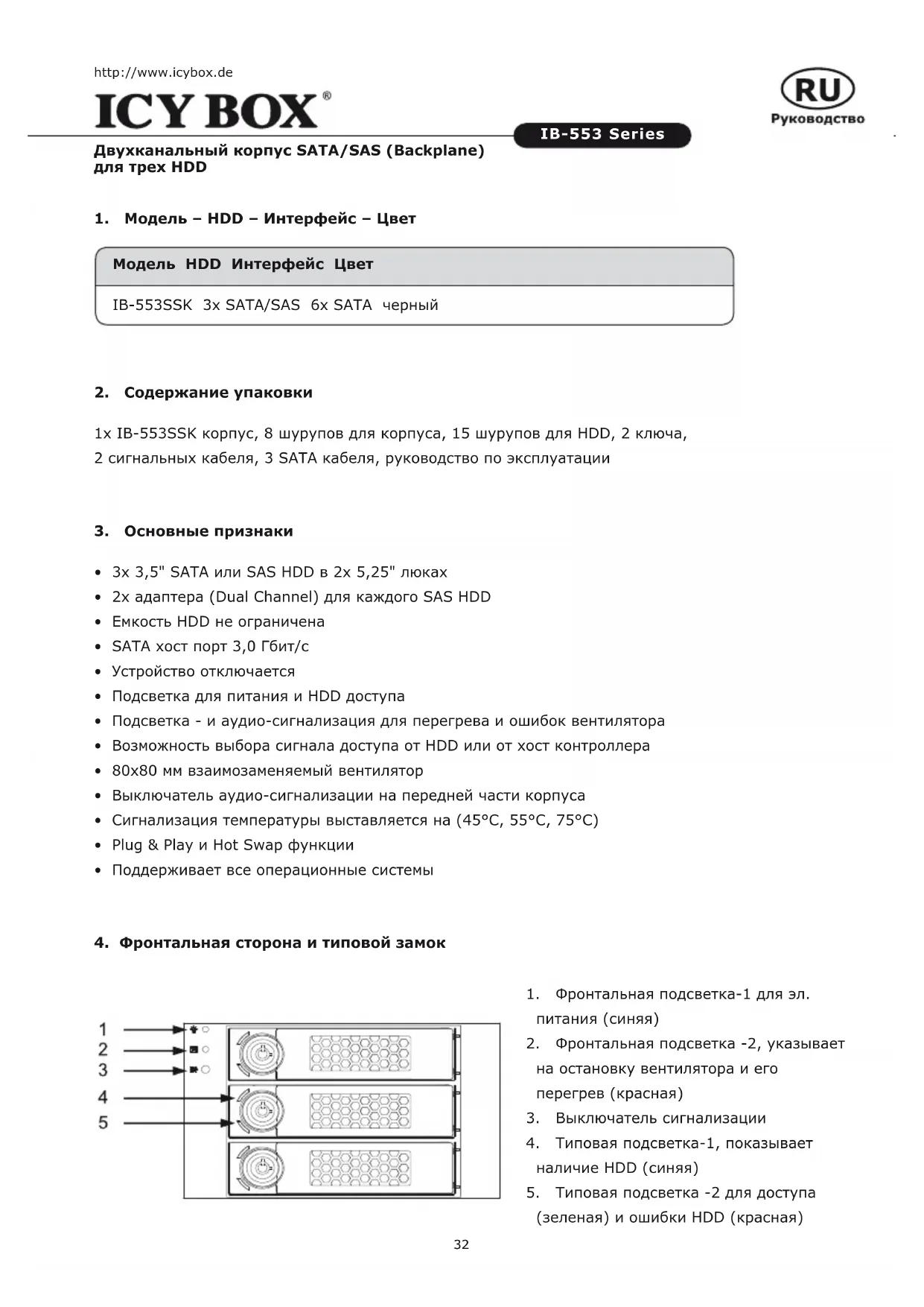 РУКОВОДСТВО ПОЛЬЗОВАТЕЛЯ IB553SSK Icy Box