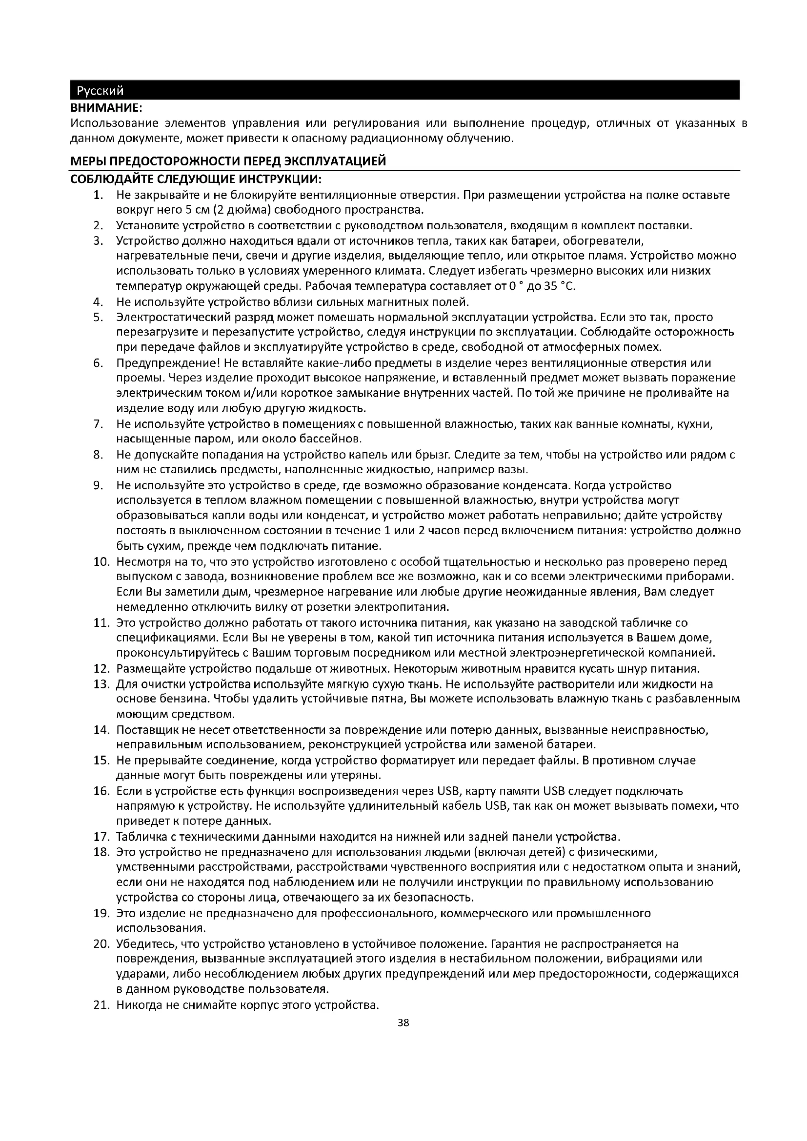 20. Убедитесь, что устройство установлено в устойчивое положение. Гарантия не распространяется на