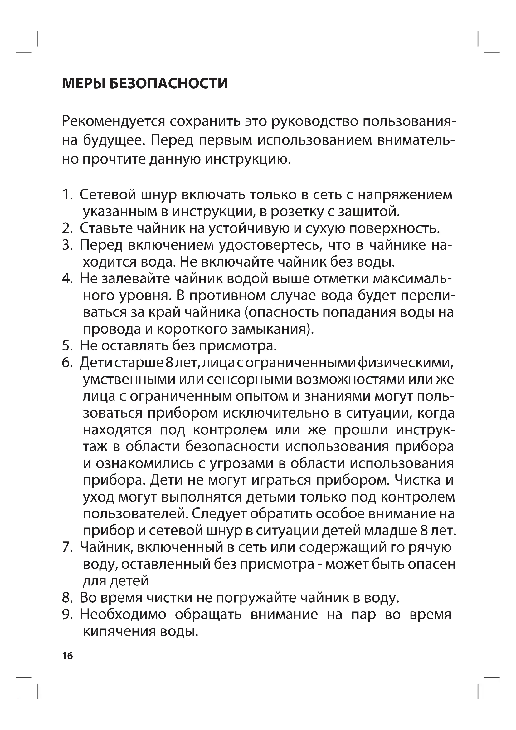 8. Во время чистки не погружайте чайник в воду.