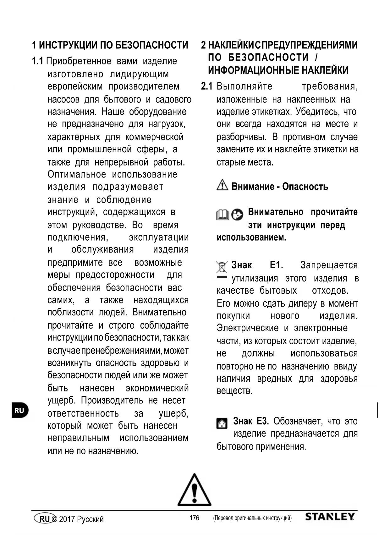 Знак E3. Обозначает, что это изделие предназначается для бытового применения.177 (Перевод оригинальных инструкций) © 2017 Русский (Перевод оригинальных инструкций) RU © 2017 Русский
