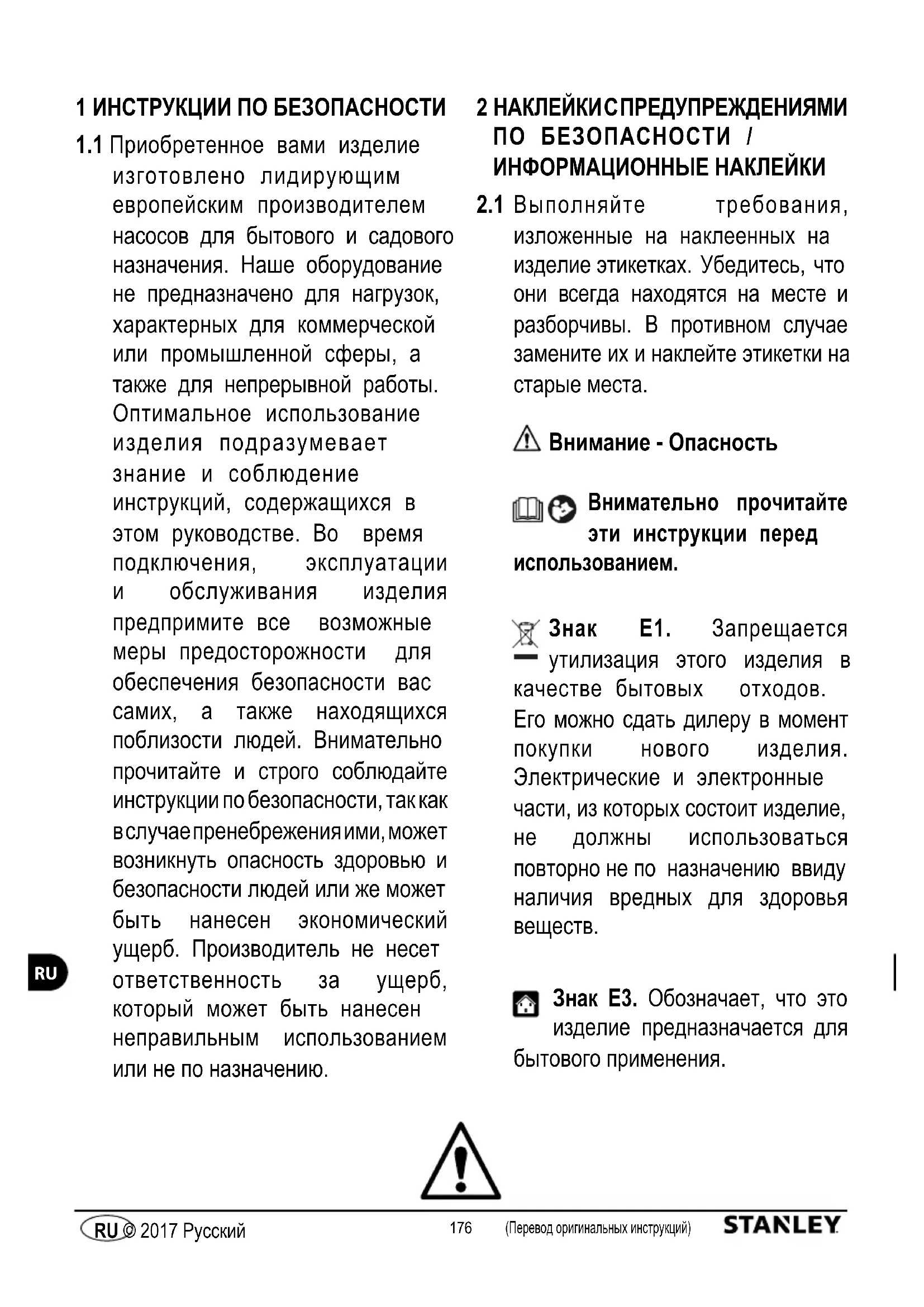 Знак E3. Обозначает, что это изделие предназначается для бытового применения.177 (Перевод оригинальных инструкций) © 2017 Русский (Перевод оригинальных инструкций) RU © 2017 Русский