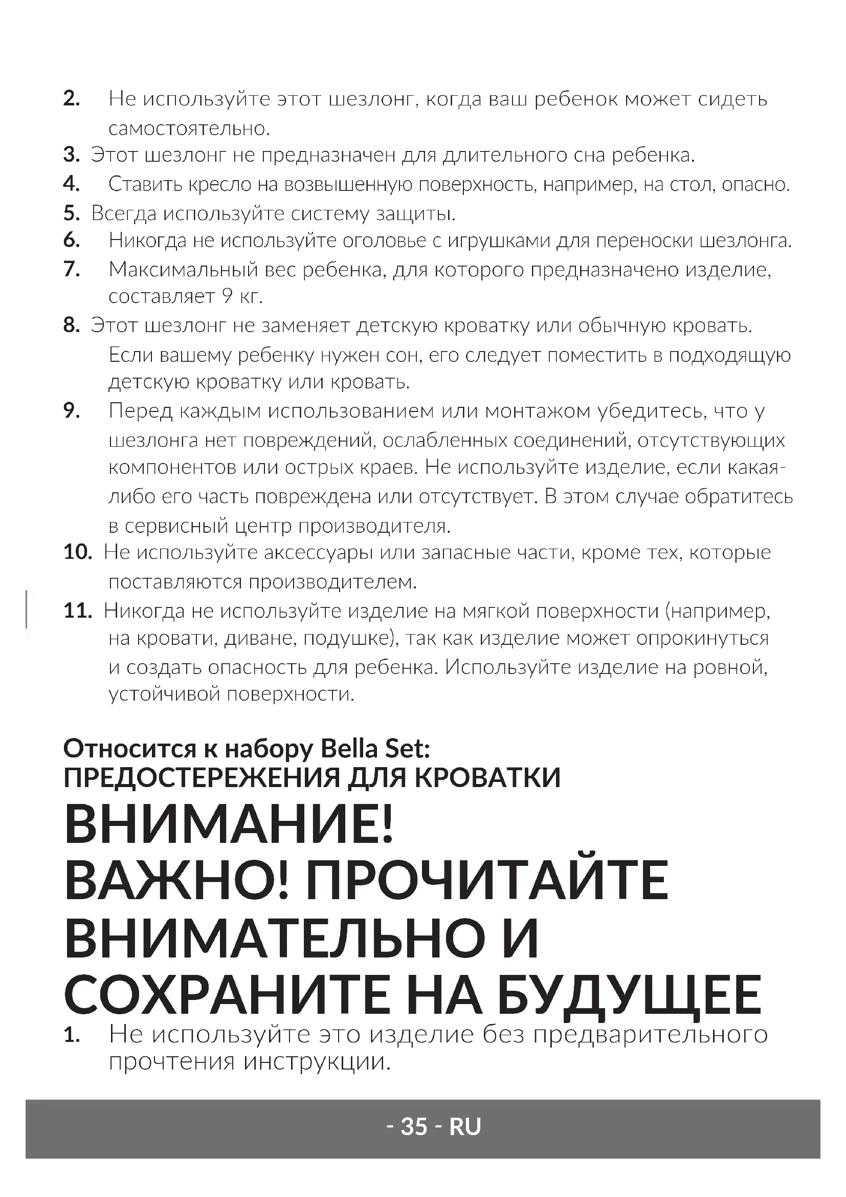 8. Этот шезлонг не заменяет детскую кроватку или обычную кровать.
