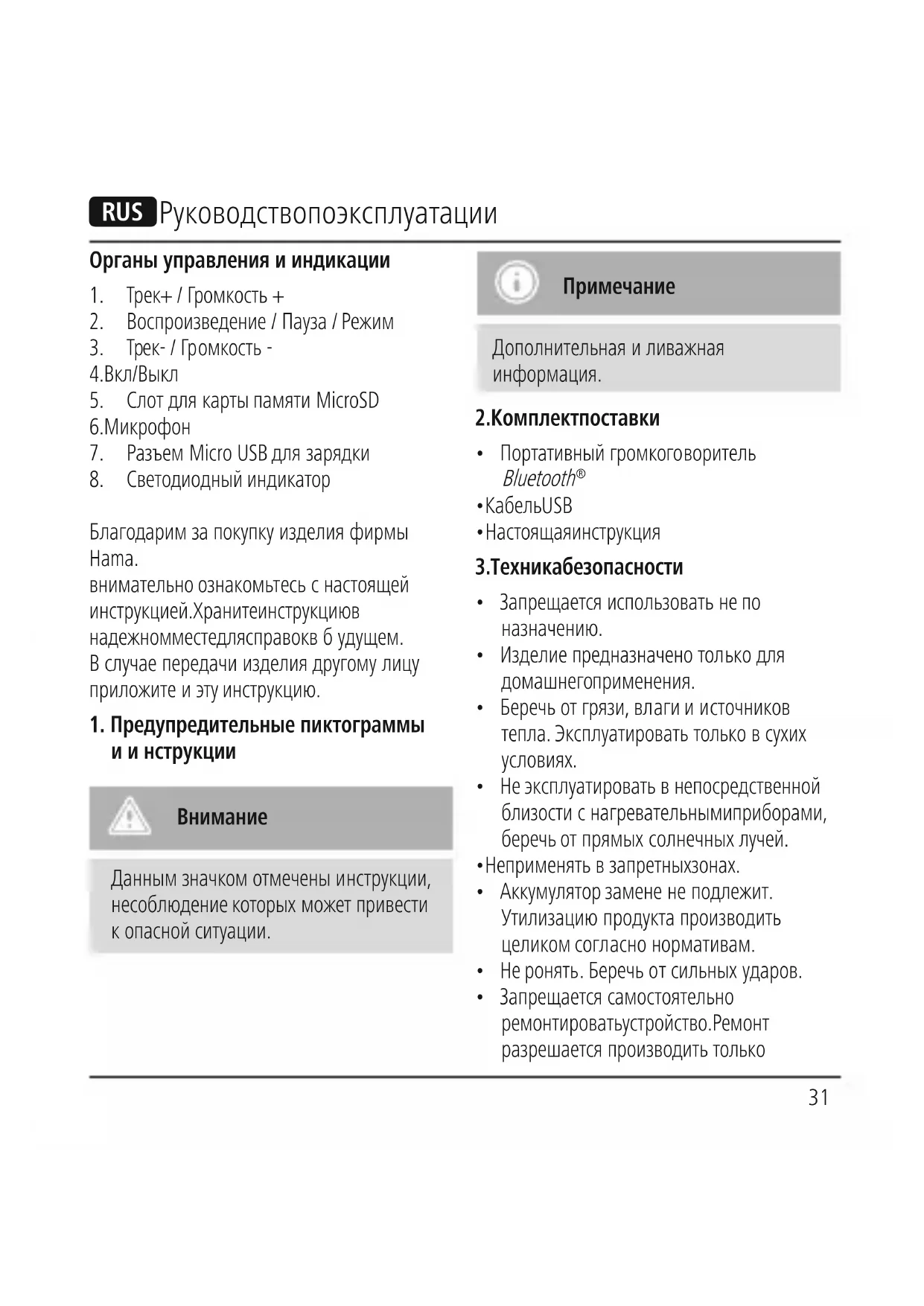 Благодаримзапокупку изделия фирмы Hama. внимательно ознакомьтесь снастоящей инструкцией. Храните инструкцию в надежном месте для справок вбудущем. Вслучае передачи изделиядругому лицу приложите иэту инструкцию.