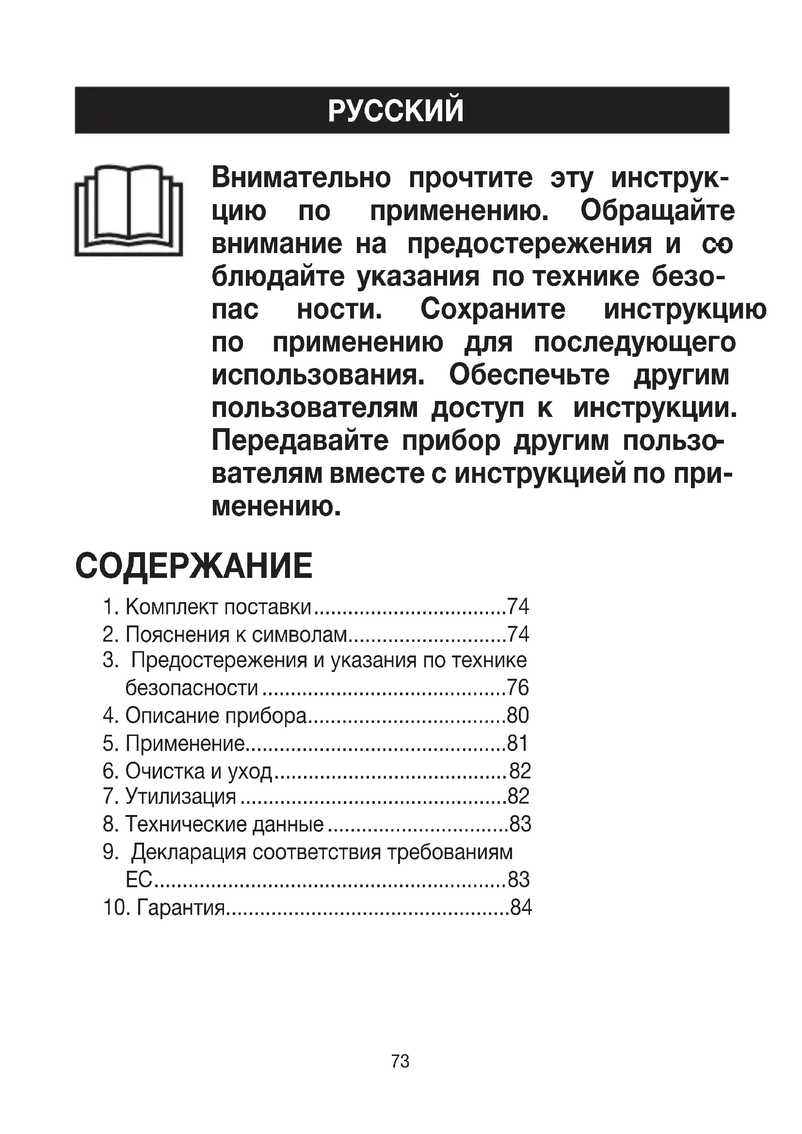 блюдайте указания потехнике безо- пас ности. Сохраните инструкцию по применению для последующего использования. Обеспечьте другим пользователям доступ к инструкции. Передавайте прибор другим пользо