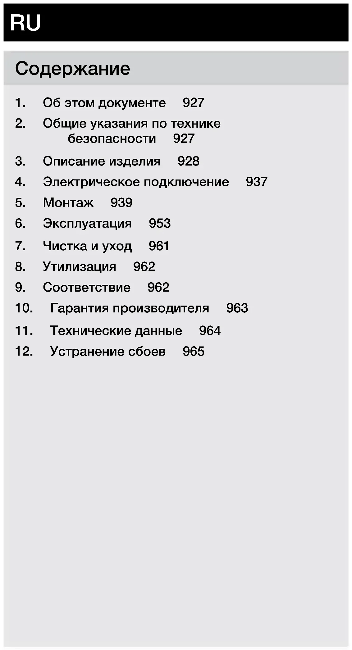 - Хранить в доступном месте. – Обращение с электрическим током может приводить к опасным ситуациям. Прикосновение к токопрово- дящим деталям может приводить к удару электриче- ским током, ожогам или летальному исходу. – Выполнение работ с сетевым подключением пору- чать только квалифицированному специализиро- ванному персоналу. – Соблюдать национальные указания по установке иусловия подключения (например, DЕ: VDE 0100, AТ: ÖVE-ÖNORM E8001-1, CH:SEV 1000). – Использовать только оригинальные запасные части.– 928 –