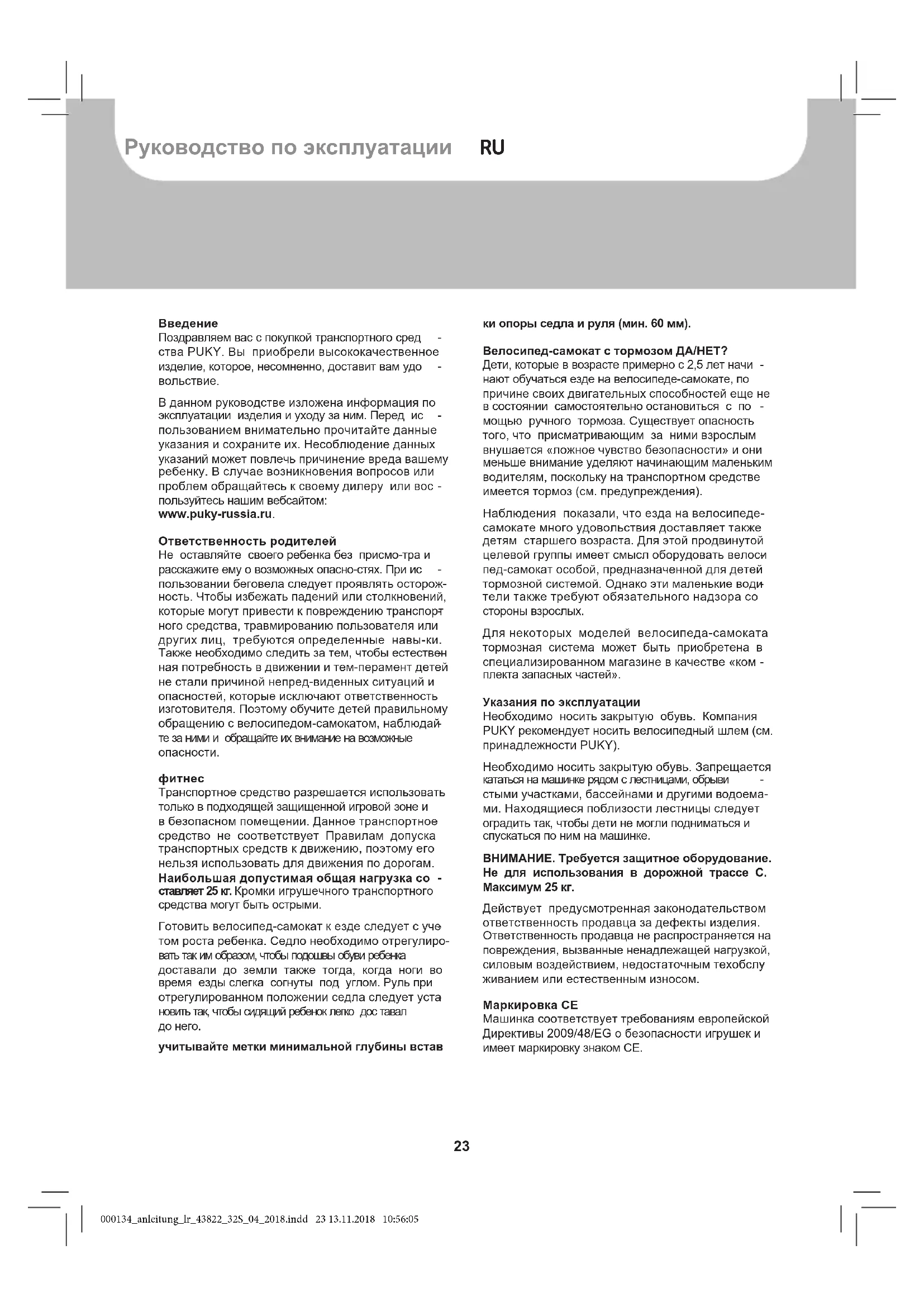 пользуйтесь нашим вебсайтом: www.puky-russia.ru. Ответственность родителей Не оставляйте своего ребенка без присмо-тра и расскажите ему о возможных опасно-стях. При ис