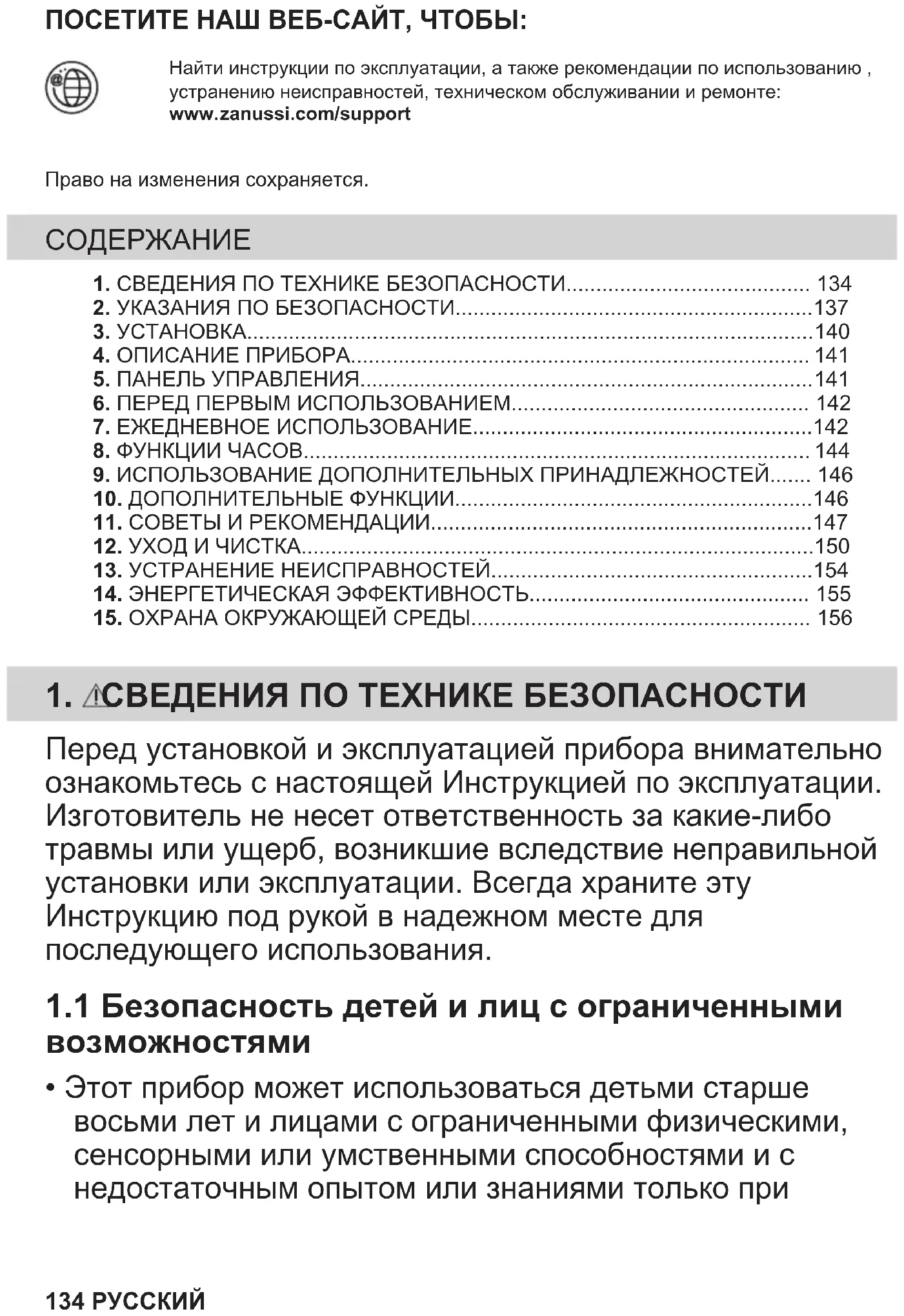 Материалы с символом следует сдавать на переработку. Положите упаковку в соответствующие контейнеры для сбора вторичного сырья. Принимая участие в переработке старого электробытового оборудования, Вы помогаете защитить окружающую среду и здоровье человека. Не выбрасывайте вместе с бытовыми отходами бытовую технику, помеченную символом . Прибор следует доставить в место раздельного накопления и сбора отходов потребления или в пункт сбора использованной бытовой техники для последующей утилизации. 156 РУССКИЙВІДВІДАЙТЕ НАШ ВЕБ-САЙТ, ЩОБ: Отримати поради з використання, брошури, інструкції з усунення несправностей,інформацію щодо сервісу та ремонту:www.zanussi.com/supportМоже змінитися без оповіщення. 1. ІНФОРМАЦІЯ З ТЕХНІКИ БЕЗПЕКИ........................................................ 1572. ІНСТРУКЦІЇ З ТЕХНІКИ БЕЗПЕКИ............................................................159