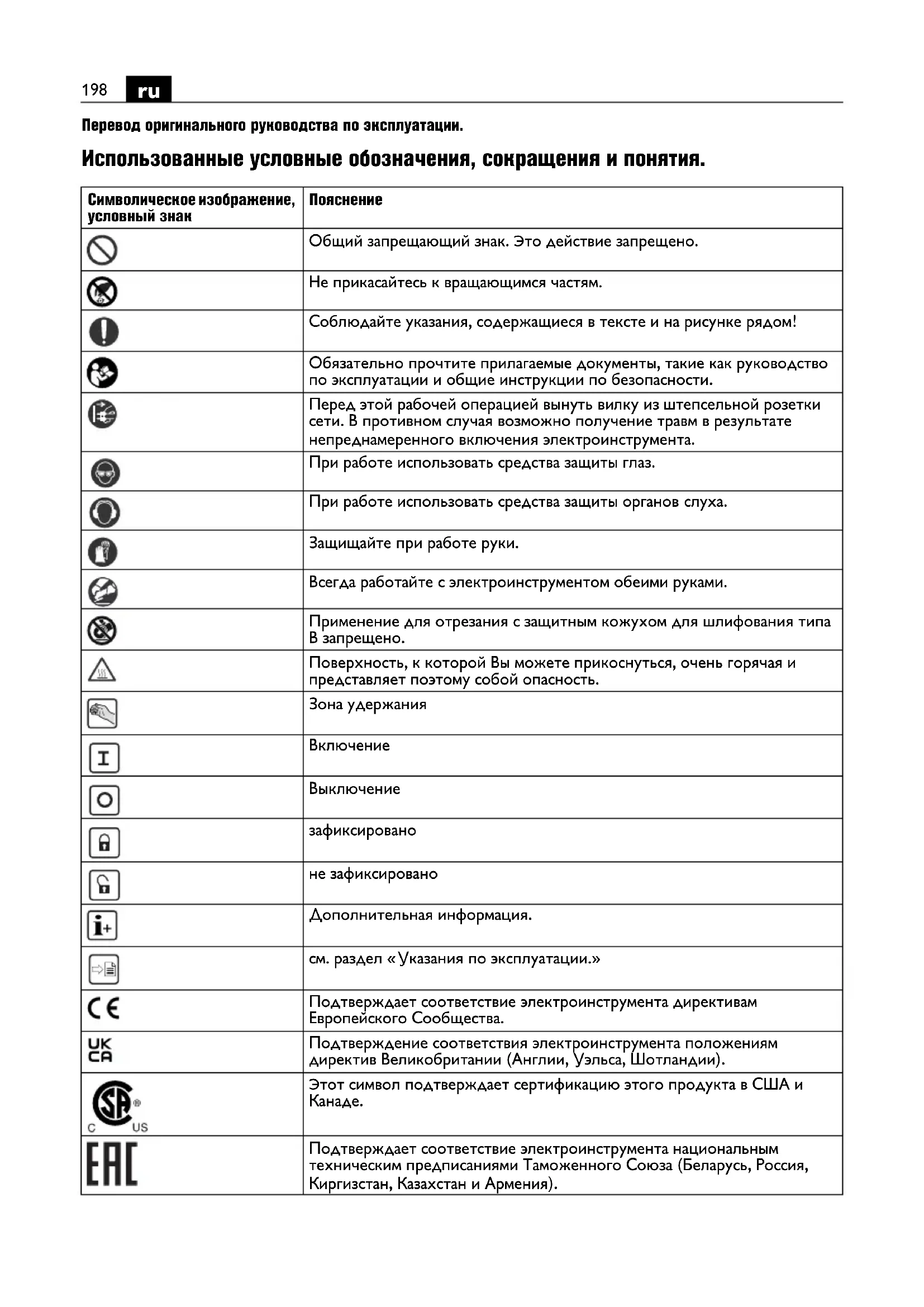 Перевод оригинального руководства по эксплуатации. Использованные условные обозначения, сокращения и понятия. Символическое изображение, условный знак