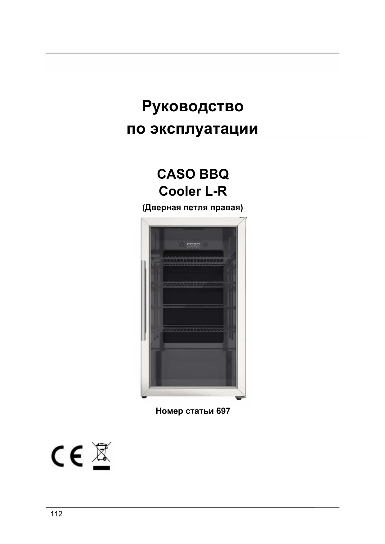 Руководство по эксплуатации CASO BBQ Cooler L-R (Дверная петля правая) Номер статьи 697113 71 Руководство по эксплуатации