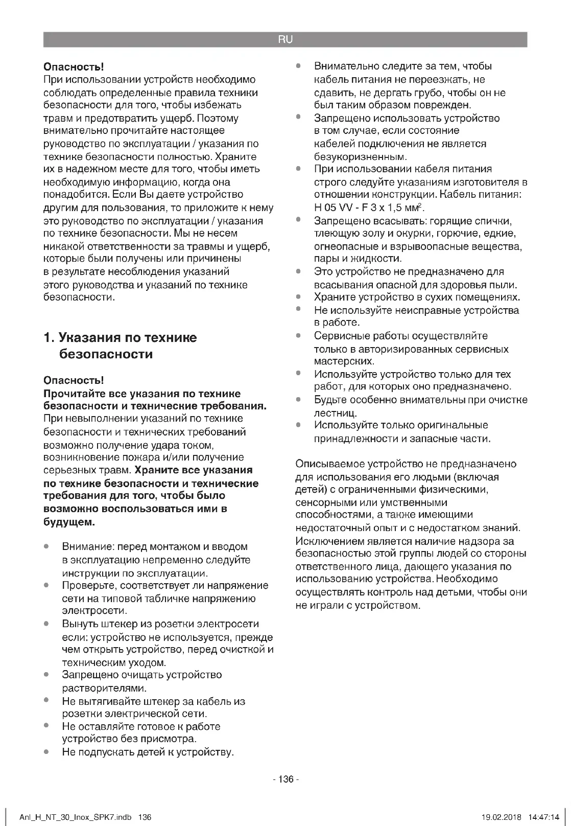 Оригинальное руководство по ксплуатации Anl_H_NT_30_Inox_SPK7.indb 137Anl_H_NT_30_Inox_SPK7.indb 137 19.02.2018 14:47:1419.02.2018 14:47:14RU