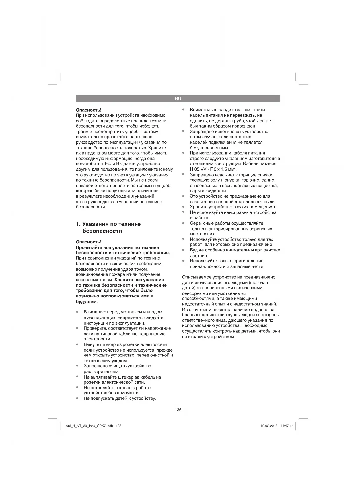 Оригинальное руководство по ксплуатации Anl_H_NT_30_Inox_SPK7.indb 137Anl_H_NT_30_Inox_SPK7.indb 137 19.02.2018 14:47:1419.02.2018 14:47:14RU