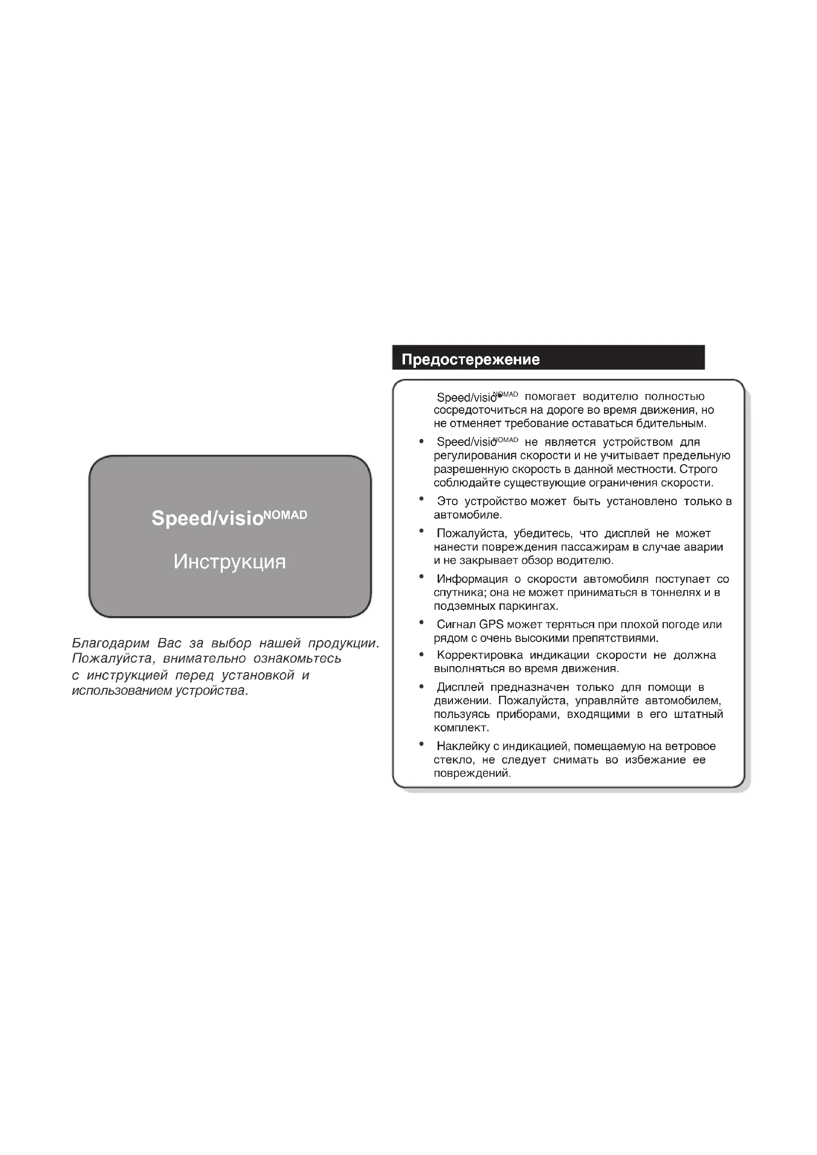 Предостережение Speed/visio• NOMAD помогает водителю полностью сосредоточиться на дороге во время движения, но не отменяет требование оставаться бдительным. Speed/visio
