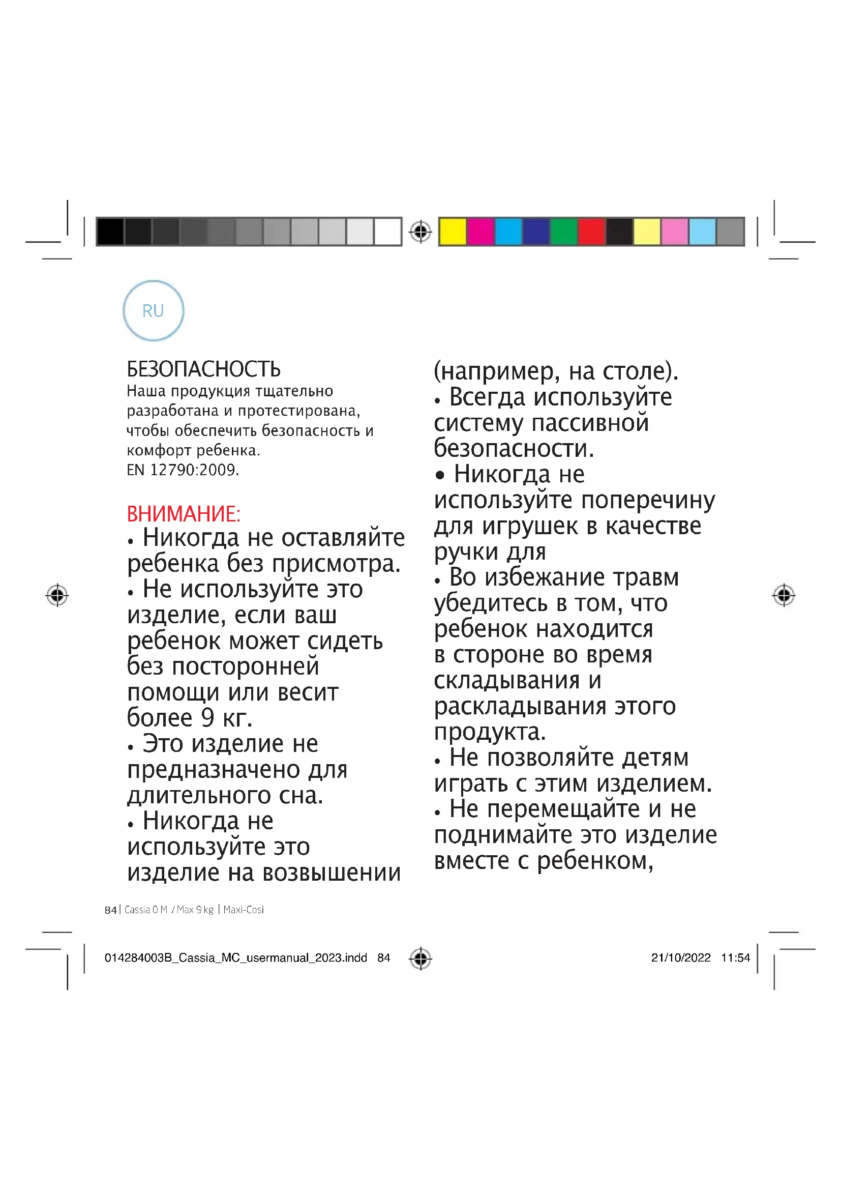 Maxi-Cosi БЕЗОПАСНОСТЬ Наша продукция тщательно разработана и протестирована, чтобы обеспечить безопасность и комфорт ребенка. EN 12790:2009.