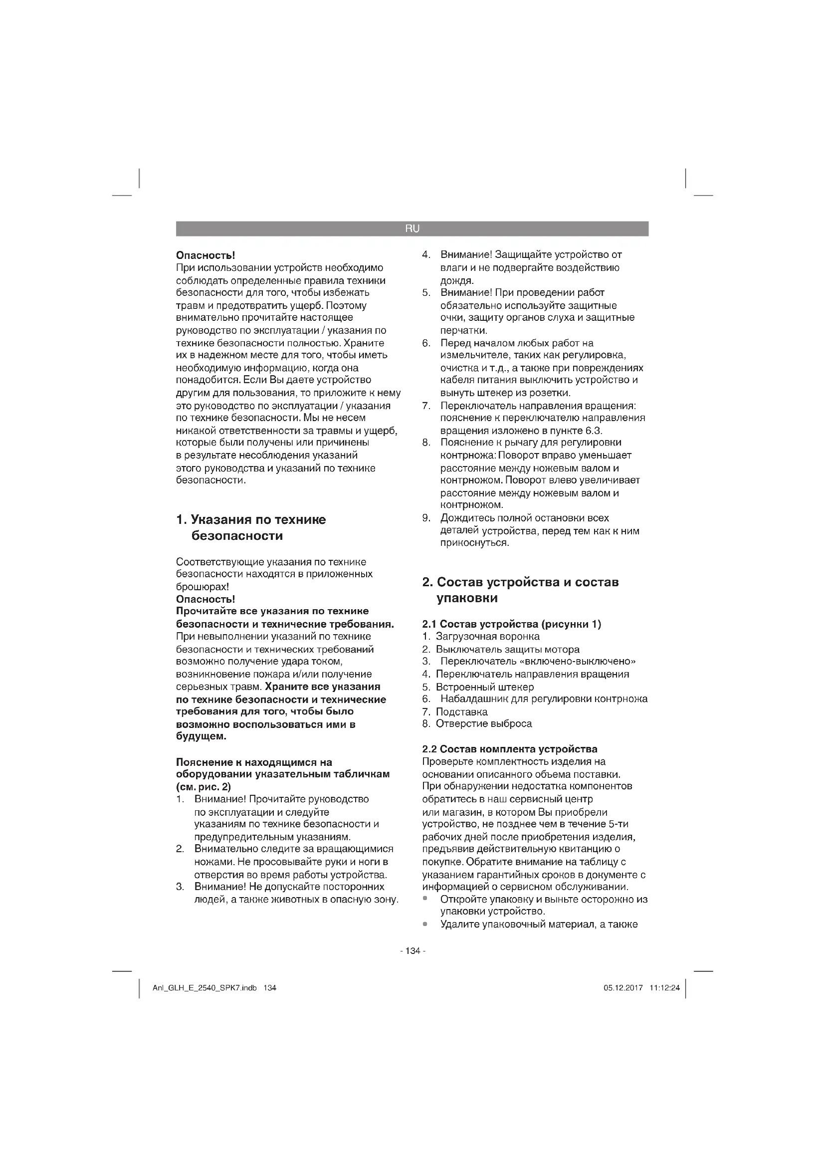 Если будет поврежден кабель питания от электросети этого устройства, то его должен заменить изготовитель устройства, его служба сервиса или другое лицо с подобной квалификацией для того, чтобы избежать опасностей. Anl_GLH_E_2540_SPK7.indb 137Anl_GLH_E_2540_SPK7.indb 137 05.12.2017 11:12:2405.12.2017 11:12:24RU