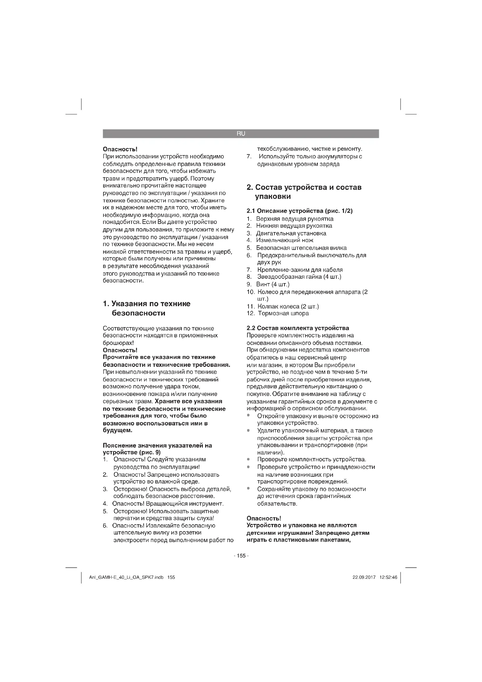 Устройство и упаковка не являются детскими игрушками! Запрещено детям играть с пластиковыми пакетами, Anl_GAMH-E_40_Li_OA_SPK7.indb 155Anl_GAMH-E_40_Li_OA_SPK7.indb 155 22.09.2017 12:52:4622.09.2017 12:52:46RU