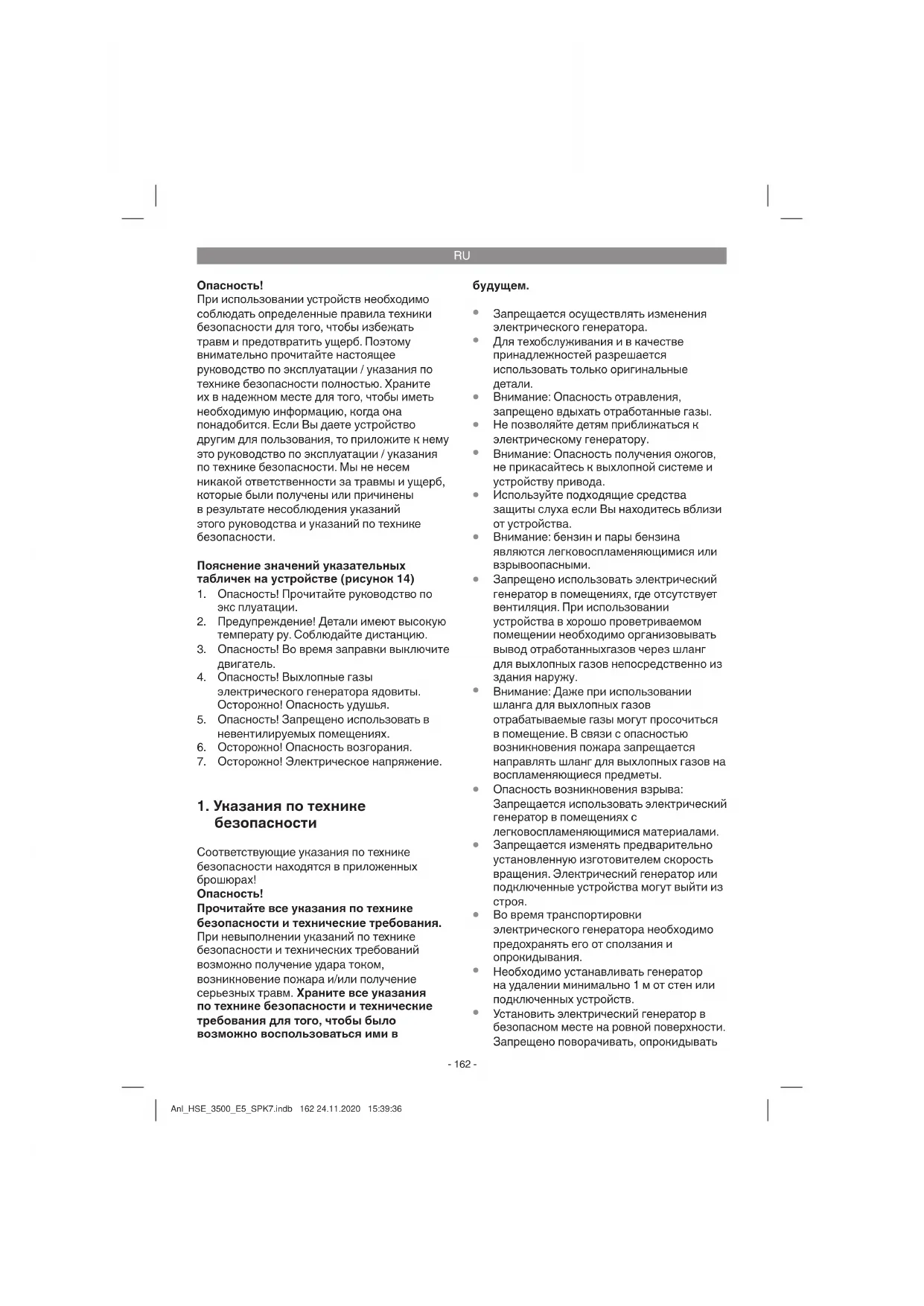 Электрические генераторы допускается Anl_HSE_3500_E5_SPK7.indb 163 24.11.2020 15:39:37RU