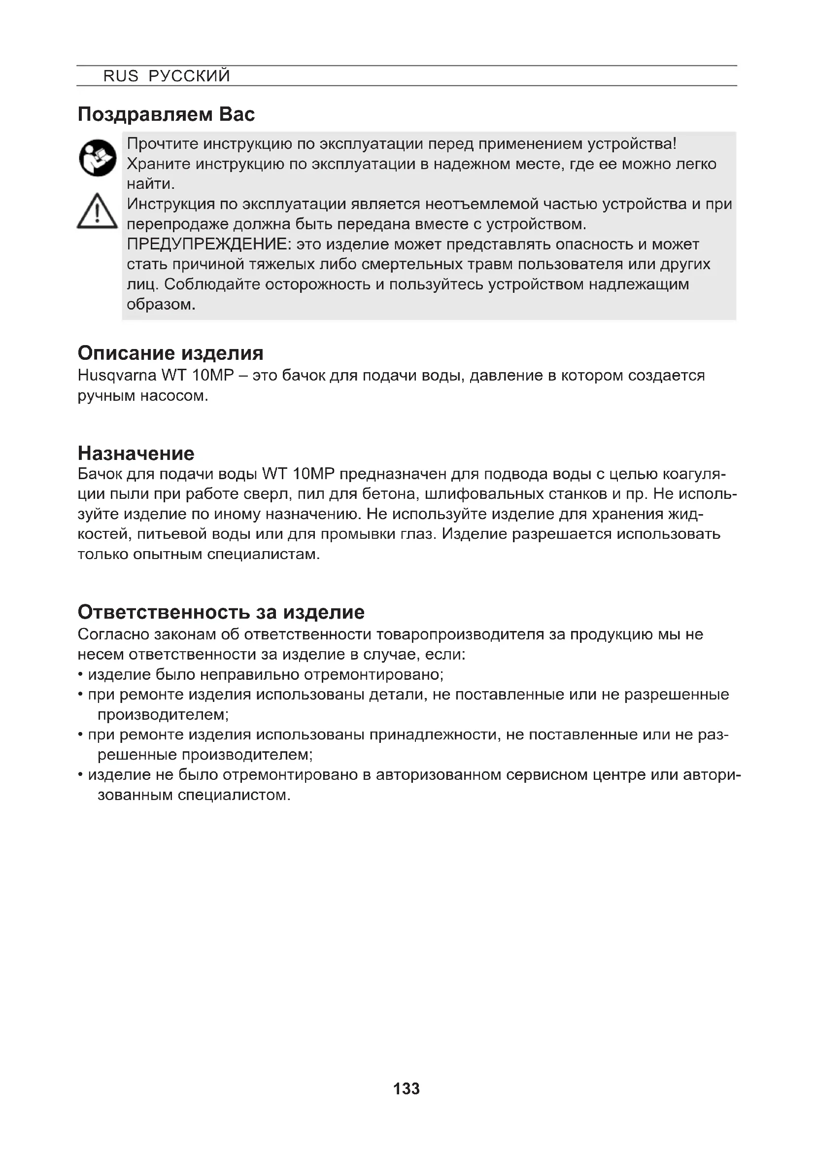 РУКОВОДСТВО ПОЛЬЗОВАТЕЛЯ WT 10MP HUSQVARNA