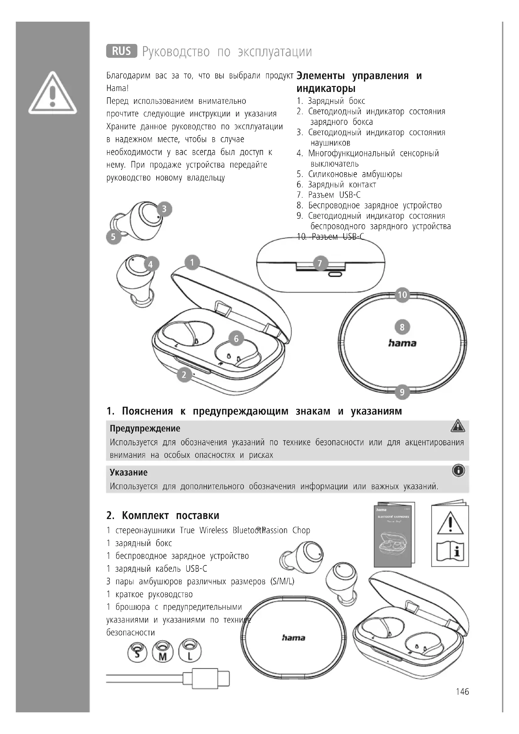 Passion Chop 1 зарядный бокс 1 беспроводное зарядное устройство 1 зарядный кабель USB-C 3 пары амбушюров различных размеров (S/M/L) 1 краткое руководство 1 брошюра с предупредительными указаниями и указаниями по технике безопасности R Руководство по эксплуатации