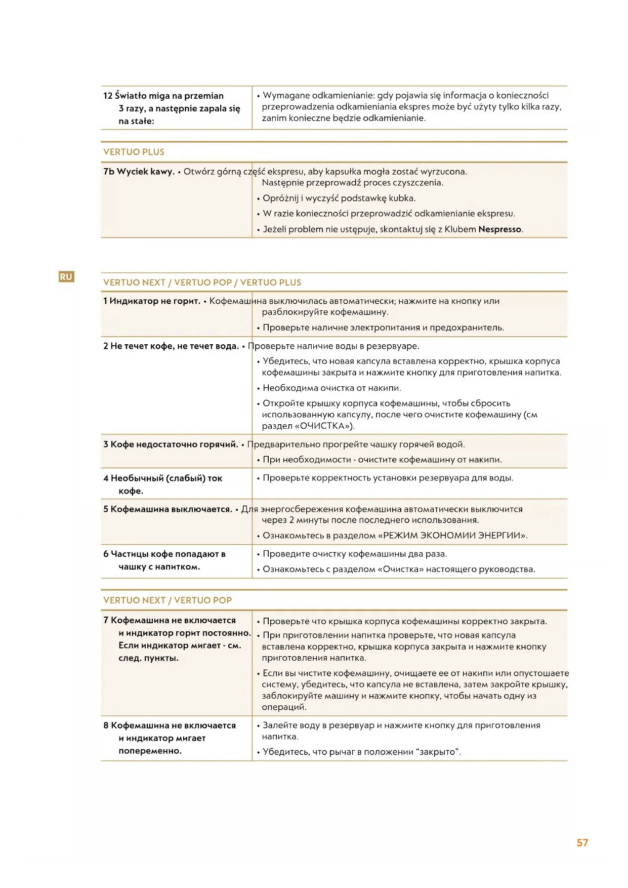 - Если проблема сохранилась, пожалуйста, обратитесь в Клуб Nespresso. 58NL