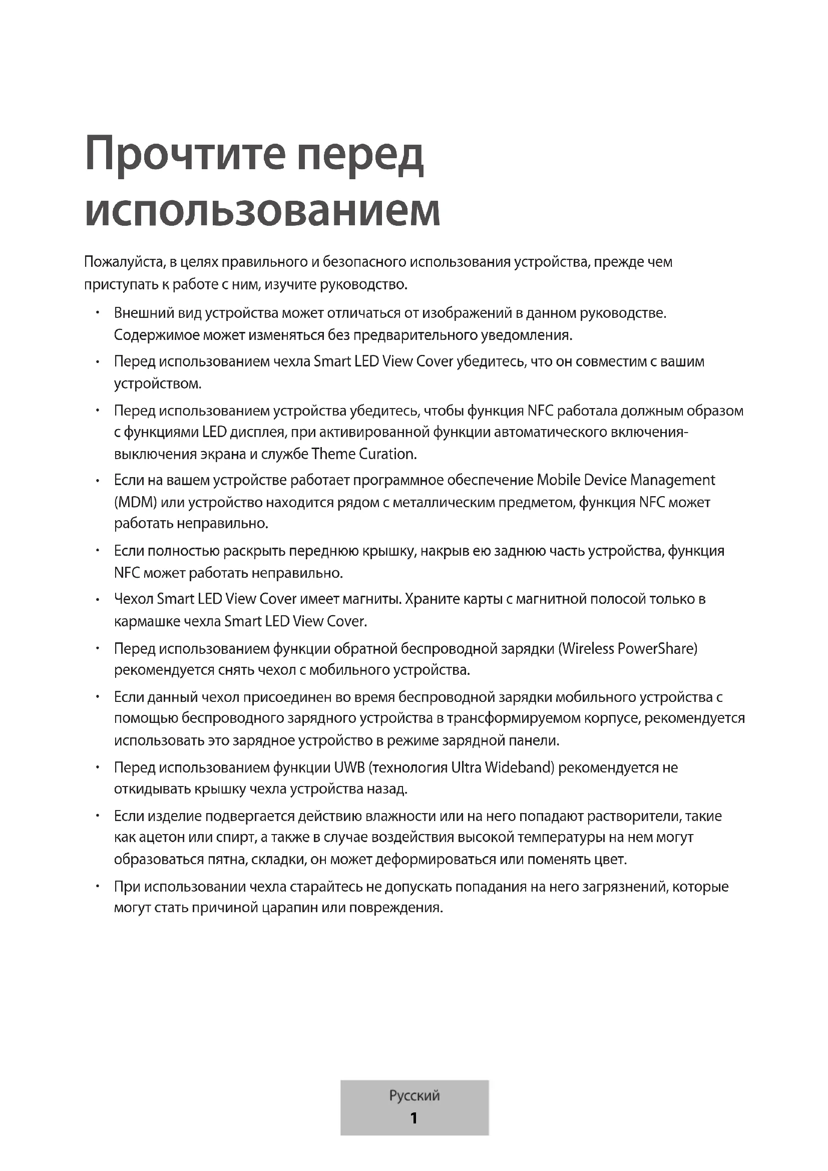 Перед использованием чехла Smart LED View Cover убедитесь, что он совместим с вашим устройством.