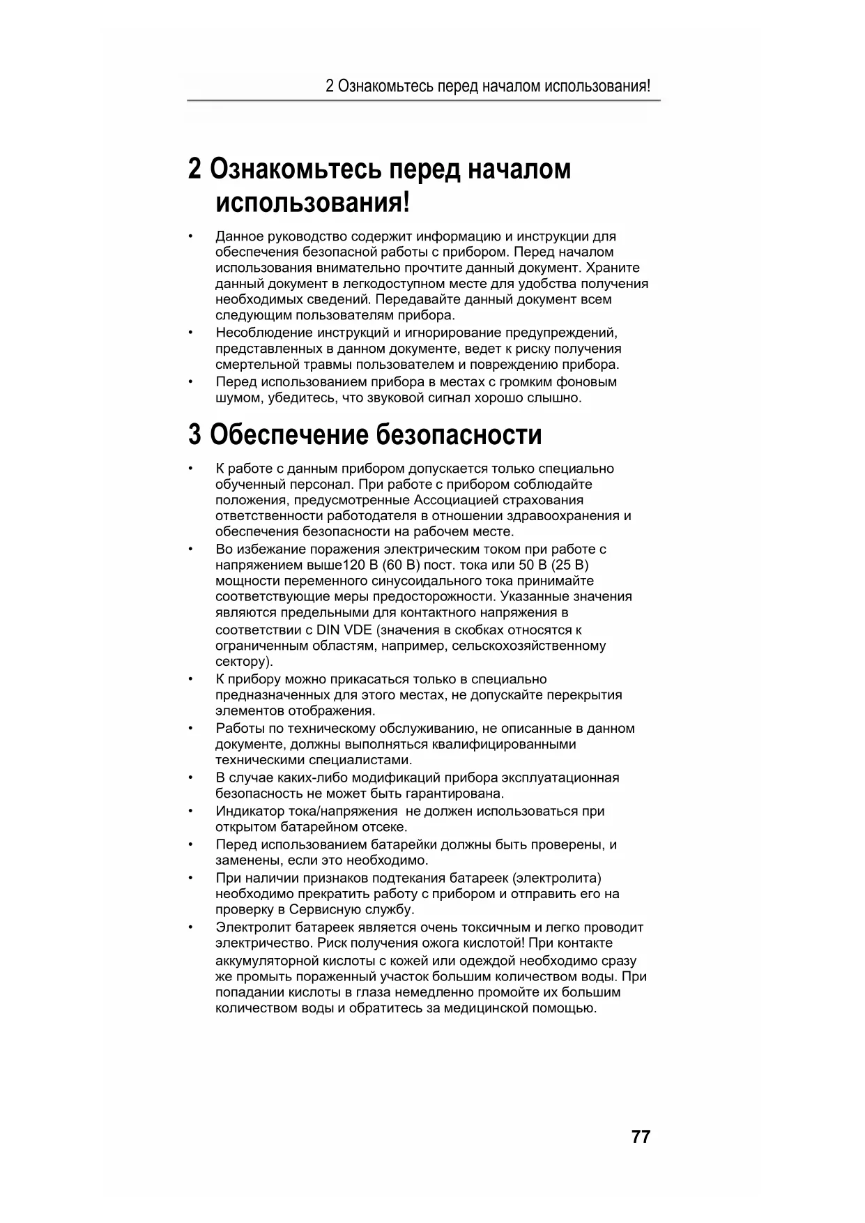 - Перед использованием прибора в местах с громким фоновым шумом, убедитесь, что звуковой сигнал хорошо слышно. 3 Обеспечение безопасности