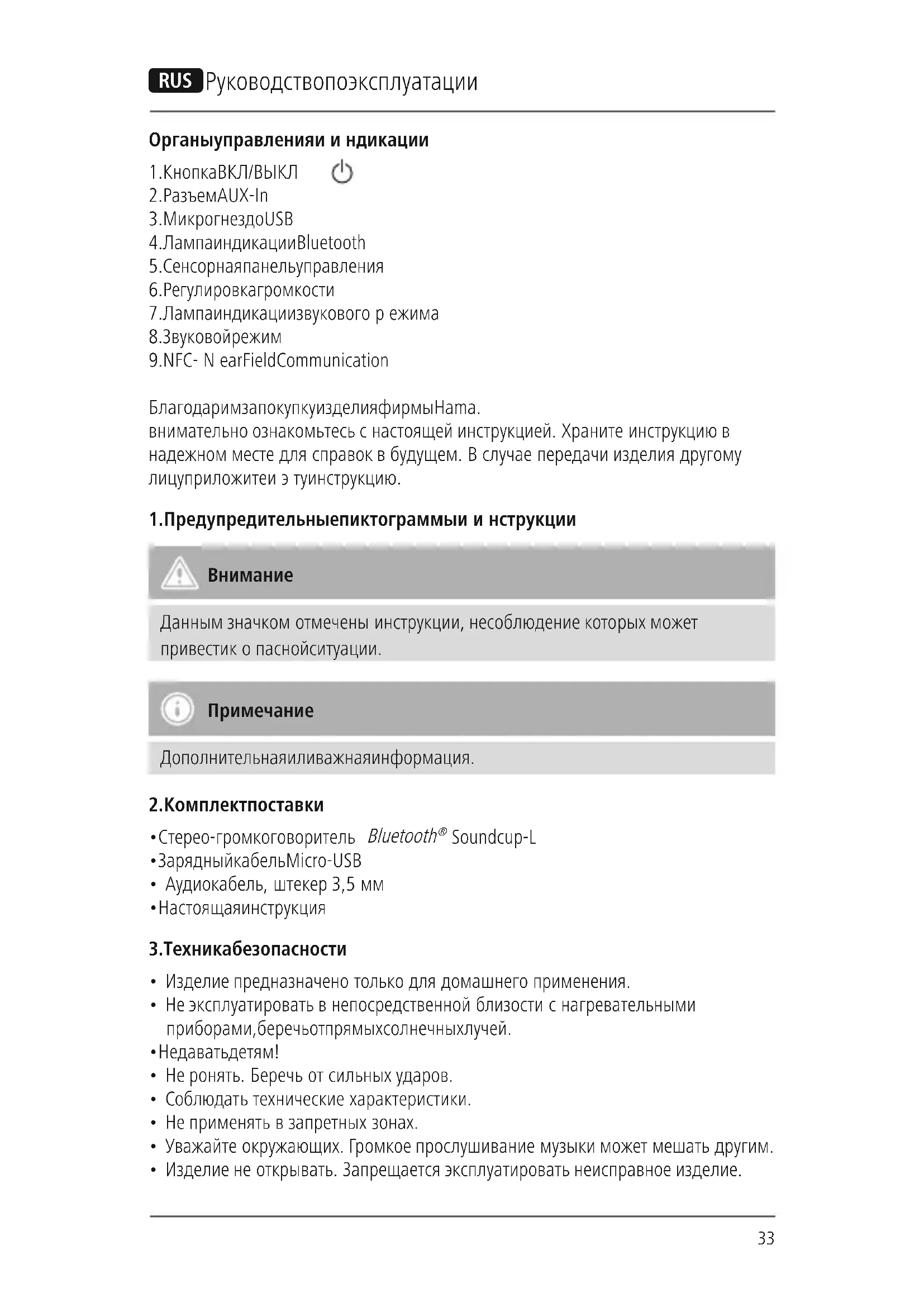 РУКОВОДСТВО ПОЛЬЗОВАТЕЛЯ Soundcup-L HAMA