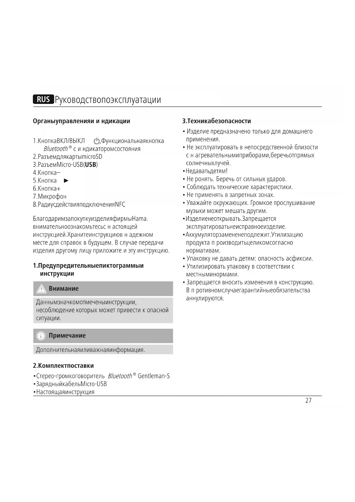 РУКОВОДСТВО ПОЛЬЗОВАТЕЛЯ Gentleman-S HAMA