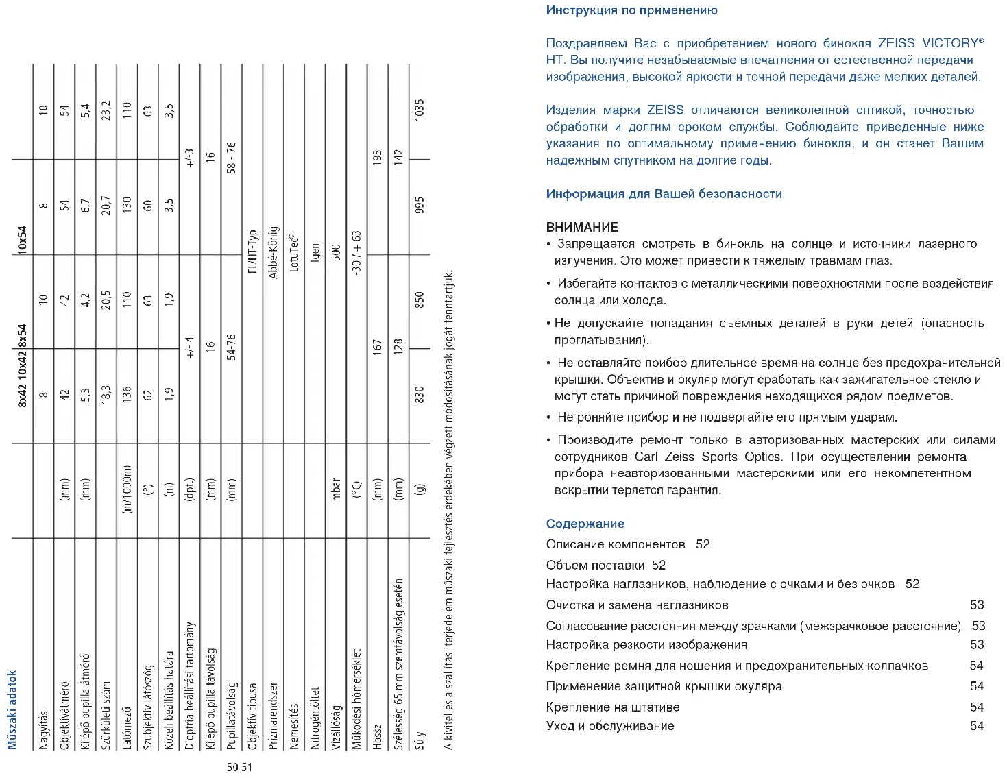 Victory HT 8x54 - бинокли ZEISS - Бесплатное руководство пользователя