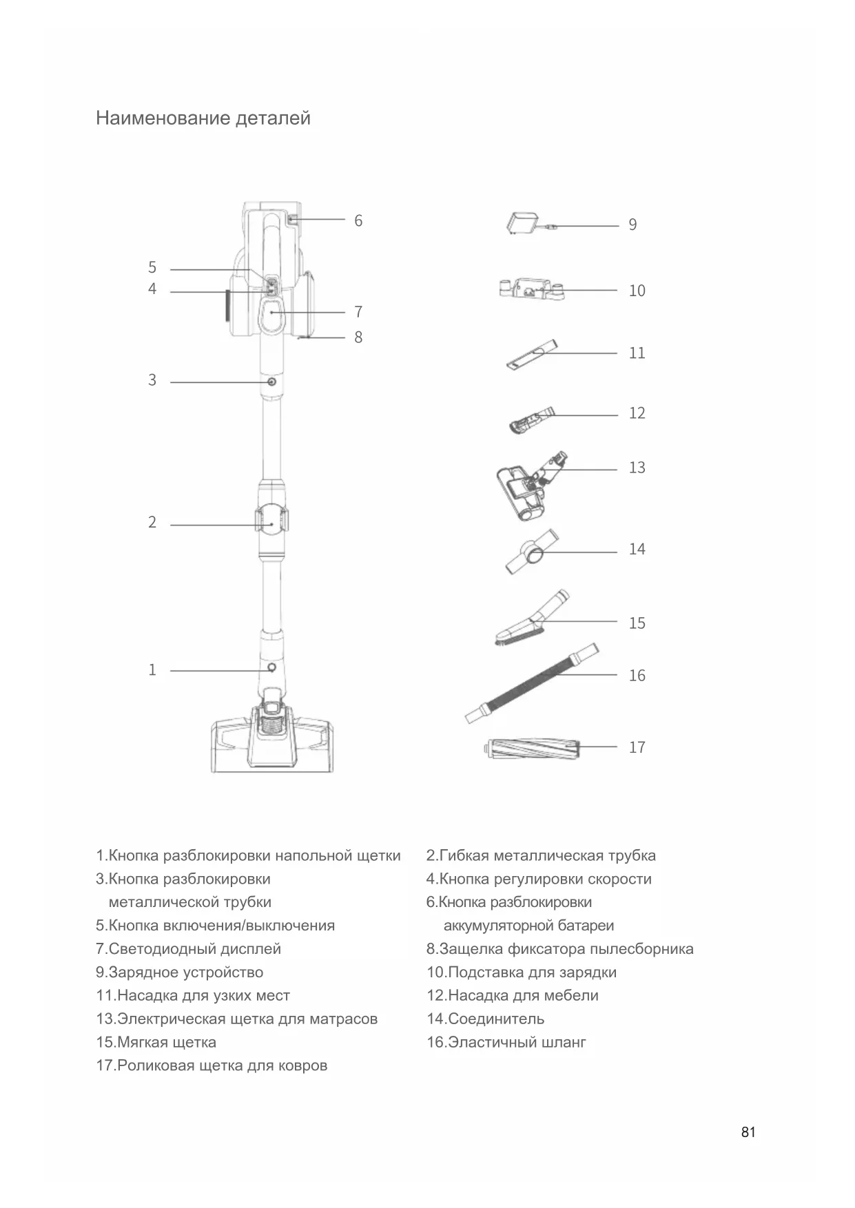 Название84 Перечень подключения насадок Расширительная трубкаПодставка для зарядки