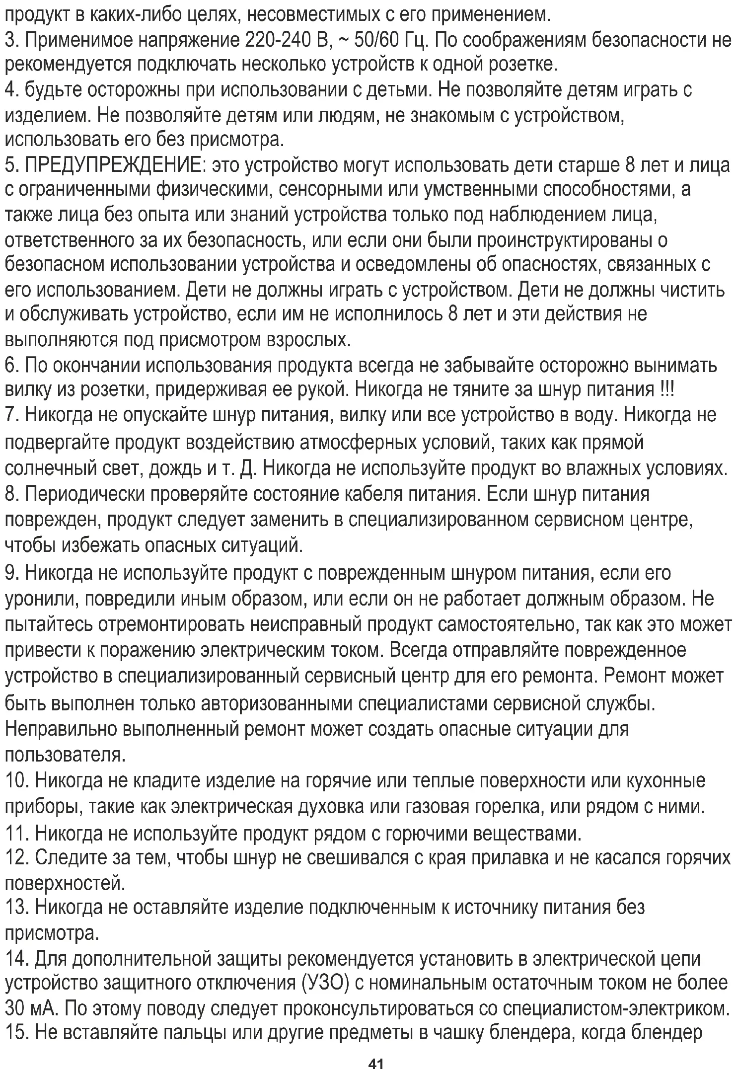 15. Не вставляйте пальцы или другие предметы в чашку блендера, когда блендер42