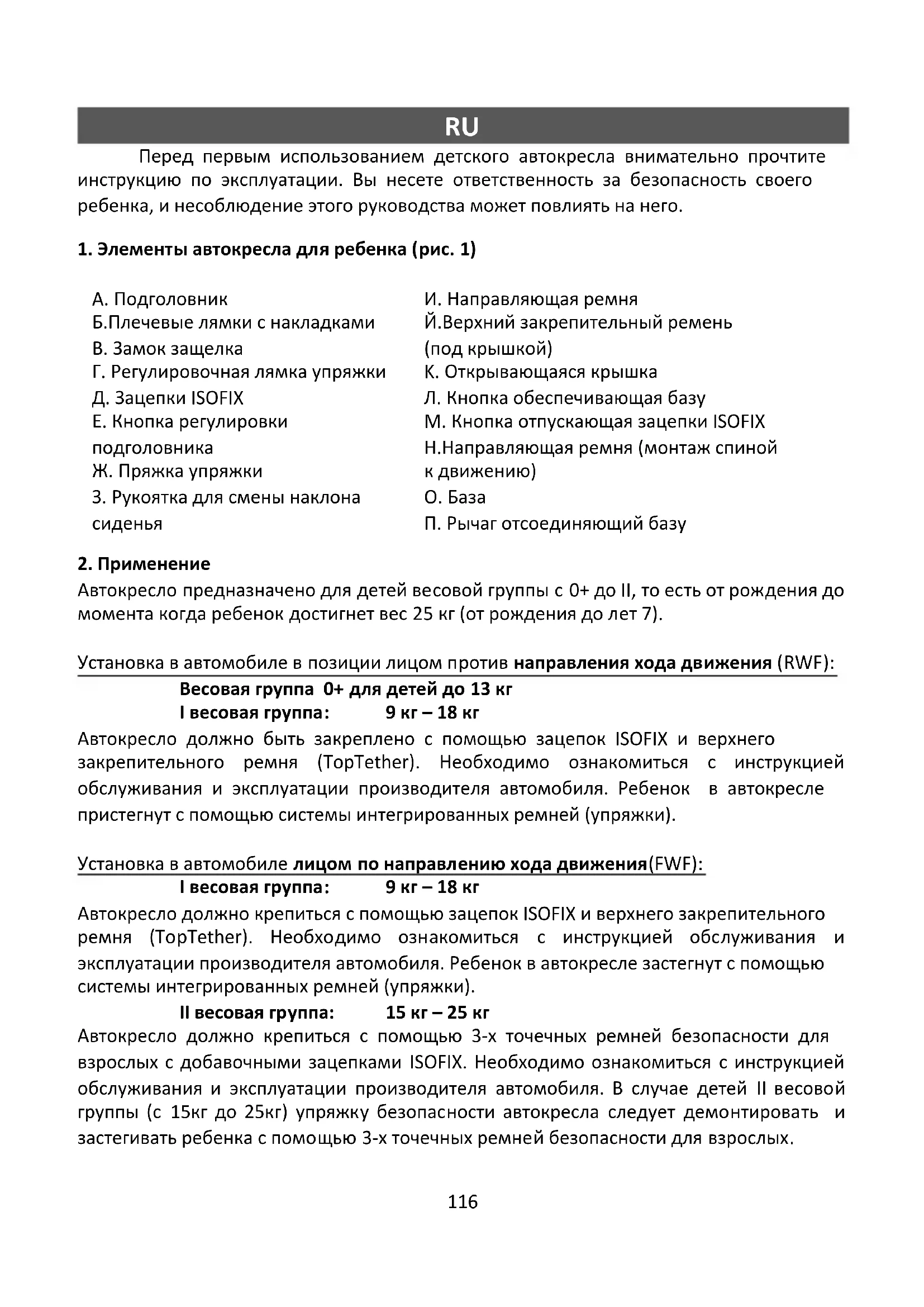 - Рекомендуется хранить инструкцию по эксплуатации в течение всего срока эксплуатации детского автокресла.