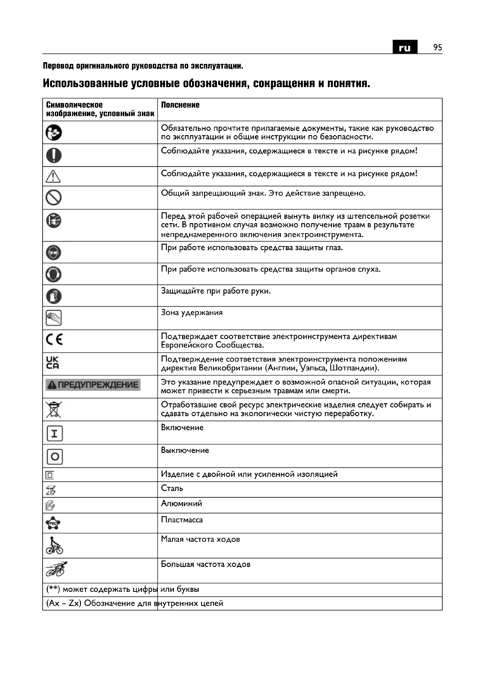 Перевод оригинального руководства по эксплуатации. Использованные условные обозначения, сокращения и понятия. Символическое изображение, условный знак