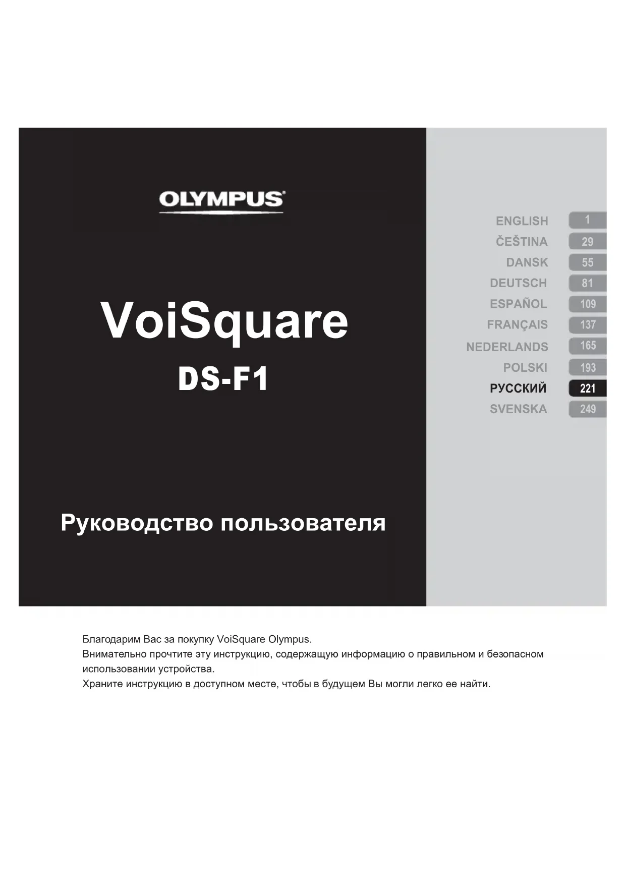 РУКОВОДСТВО ПОЛЬЗОВАТЕЛЯ VoiSquare DS F1 OLYMPUS